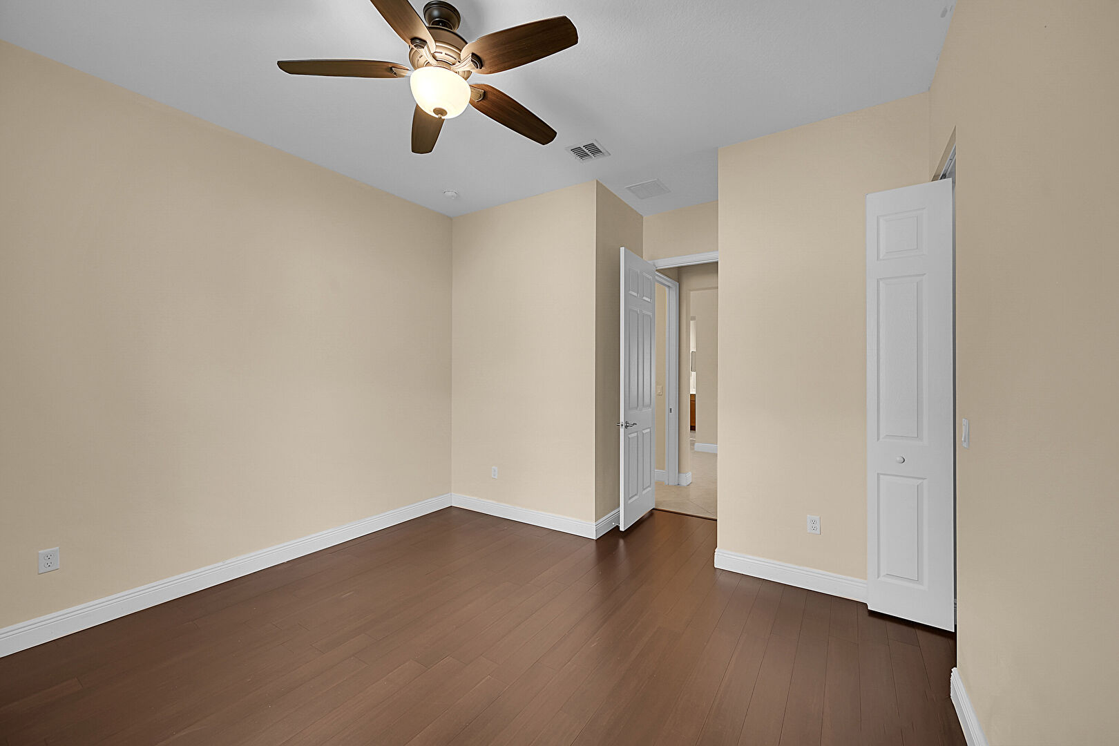 Baseboards Wall, Ceiling Fan, Drywall, Natural Light, Vent, Wood Finish Floor, Ceiling Fan, Closet