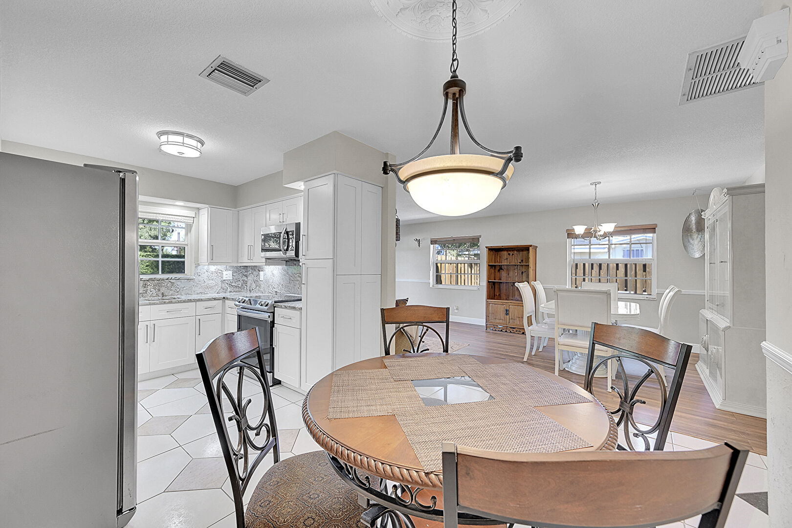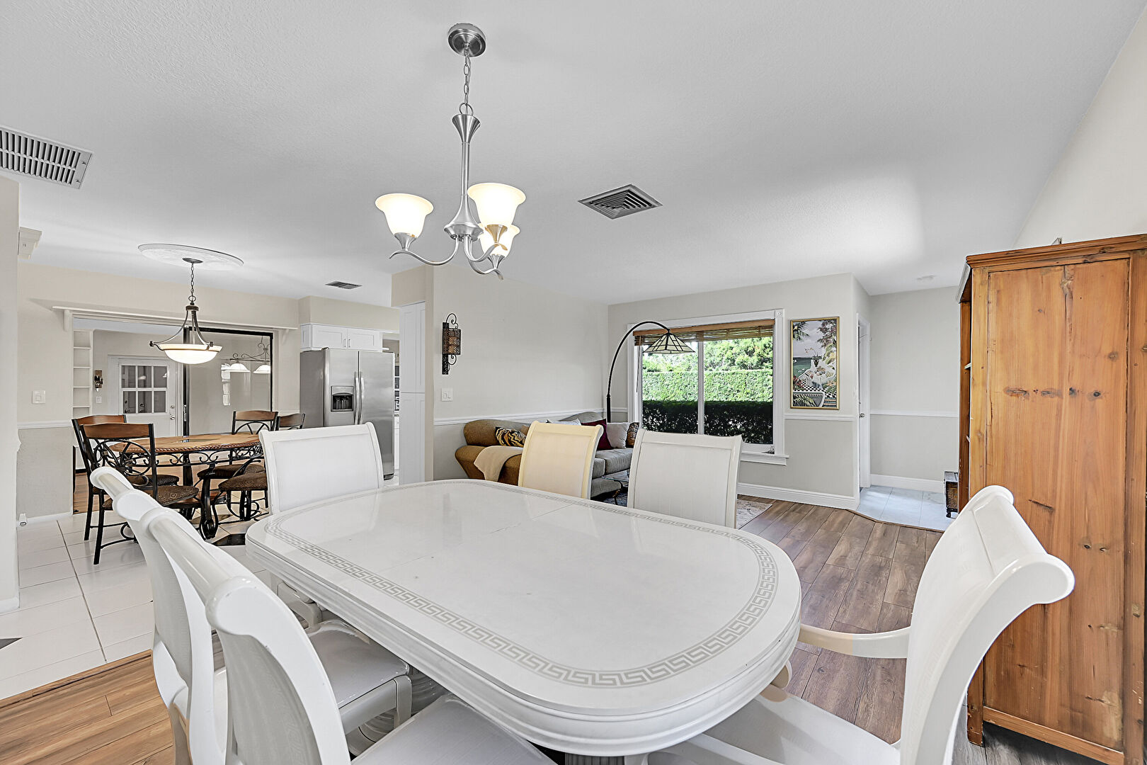 Baseboards Wall, Built In Shelves, Drywall, Natural Light, Notable Chandelier, Tile Floor, Vent, Wood Finish Floor, Natural Light, U Shaped Kitchen, Vent