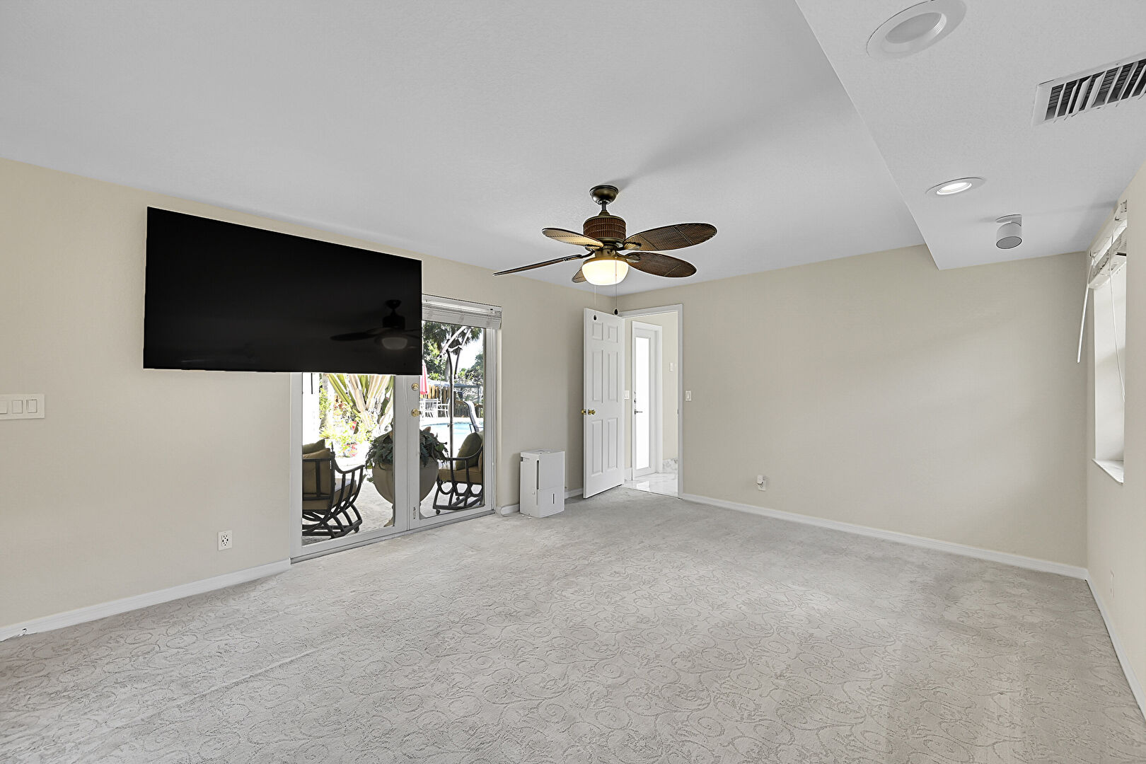 Access To Exterior, Baseboards Wall, Carpet, Ceiling Fan, Closet, Drywall, Natural Light, Recessed Lighting, Textured Ceiling, Vent, Wood Finish Floor, Baseboards Wall, Ceiling Fan, Drywall, Natural Light