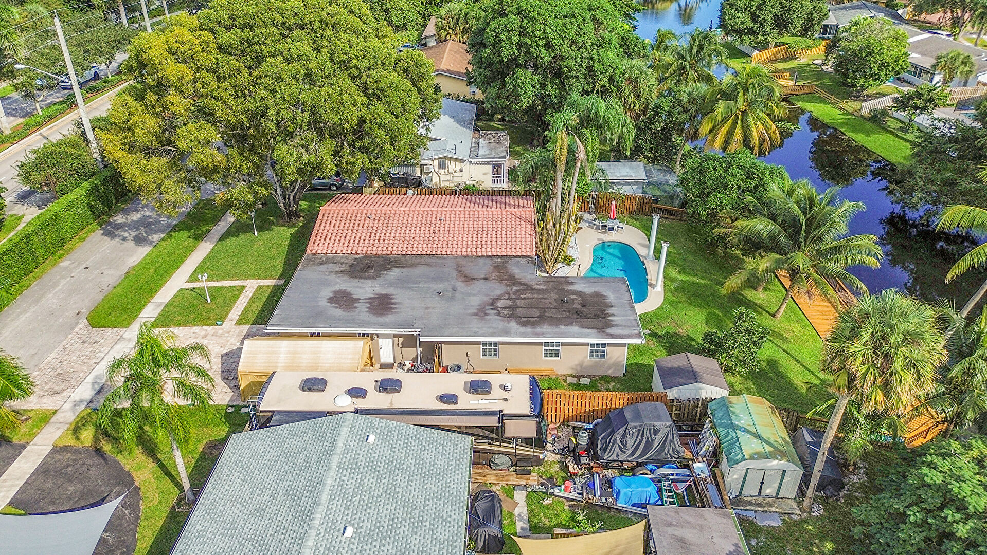 Fence, Outdoor Dining Area, Outdoor Structure, Patio, Pool, Shed, Water View, Patio, Waterfront
