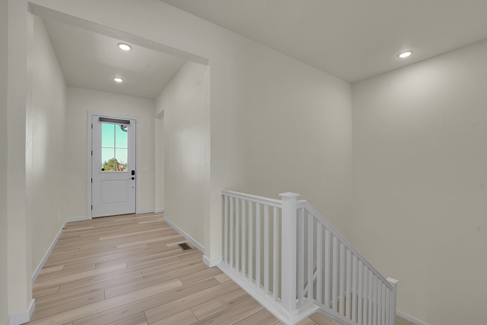 Baseboards Wall, Drywall, Recessed Lighting, Upstairs Landing, Vent, Wood Finish Floor, Natural Light