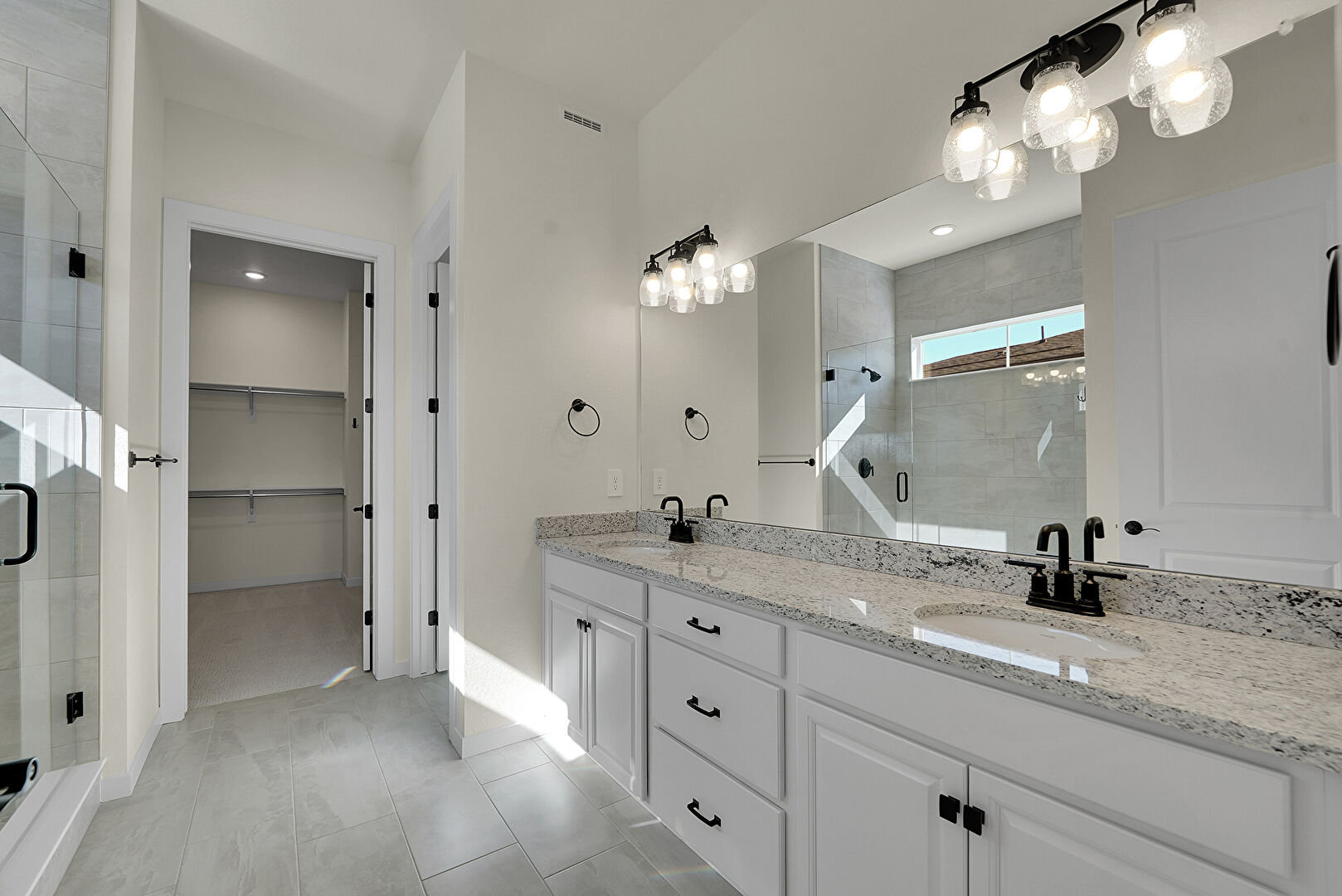 Baseboards Wall, Carpet, Combined Bath Shower, Double Vanity, Drywall, Full Bathroom, Half Bathroom, Natural Light, Recessed Lighting, Tile Floor, Vanity, Vent, Baseboards Wall, Carpet, Tile Floor, Walk In Closet, Wood Finish Floor