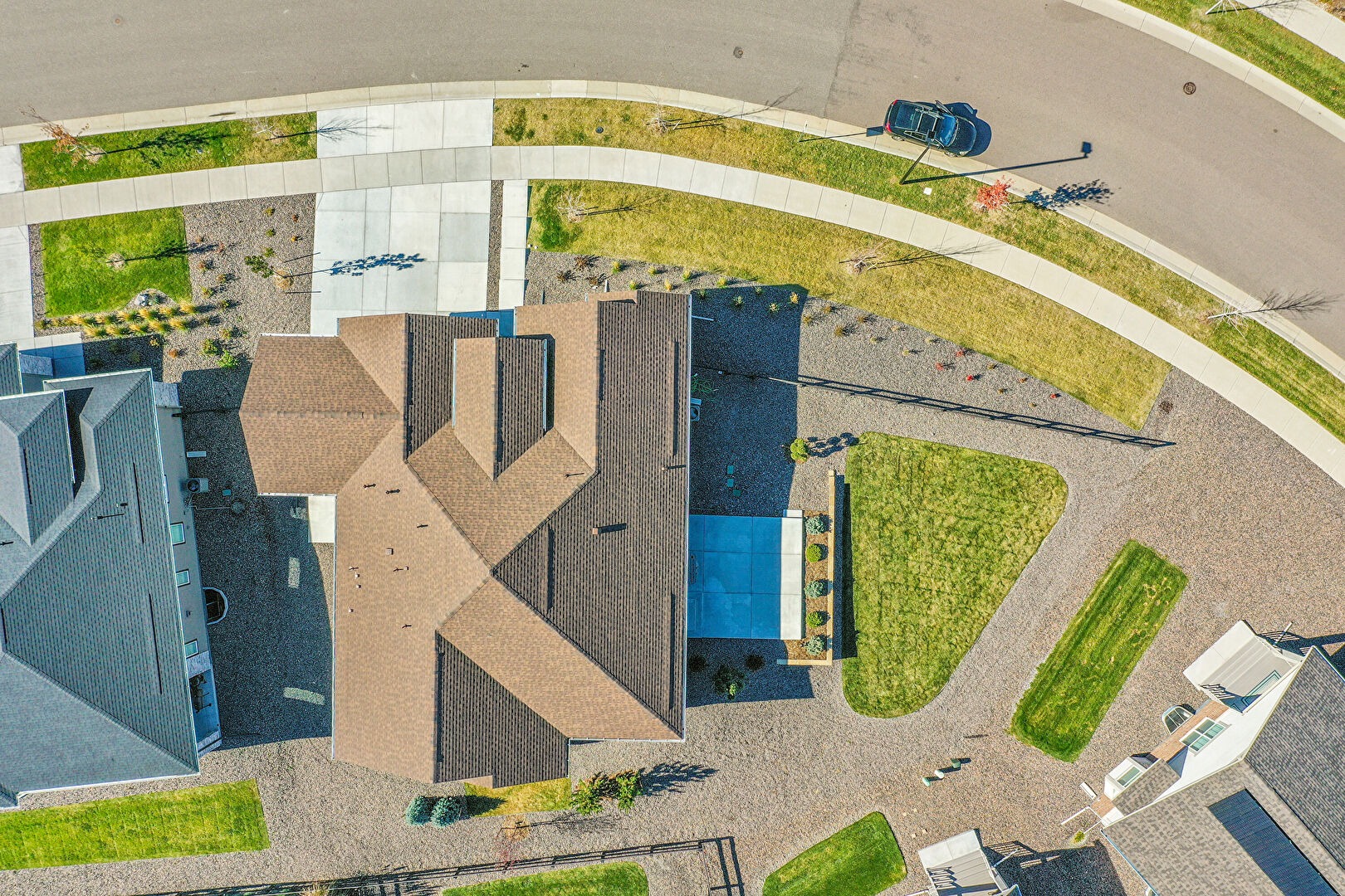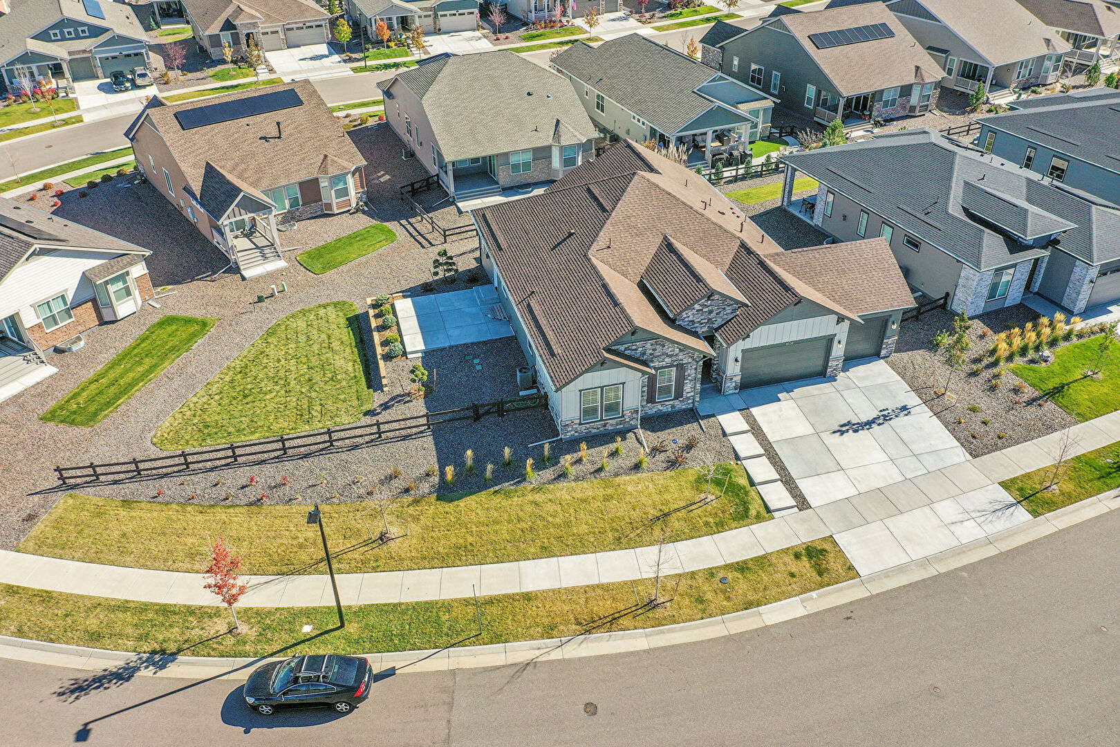Downspout, Fence, Gutters, Horizontal Siding, Lawn, Residential View, Shingle Roof, Vertical Siding, Patio, Shingle Roof