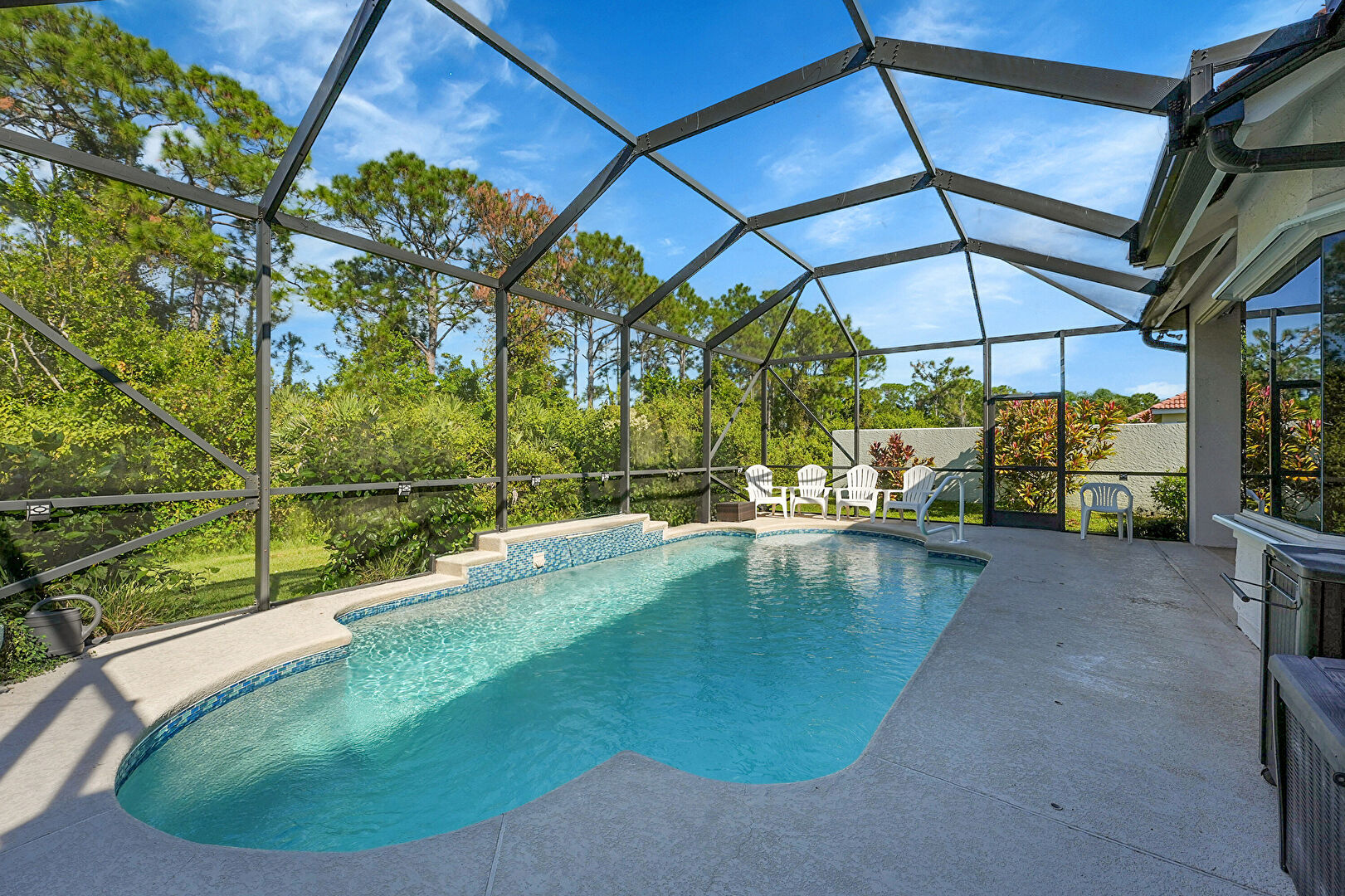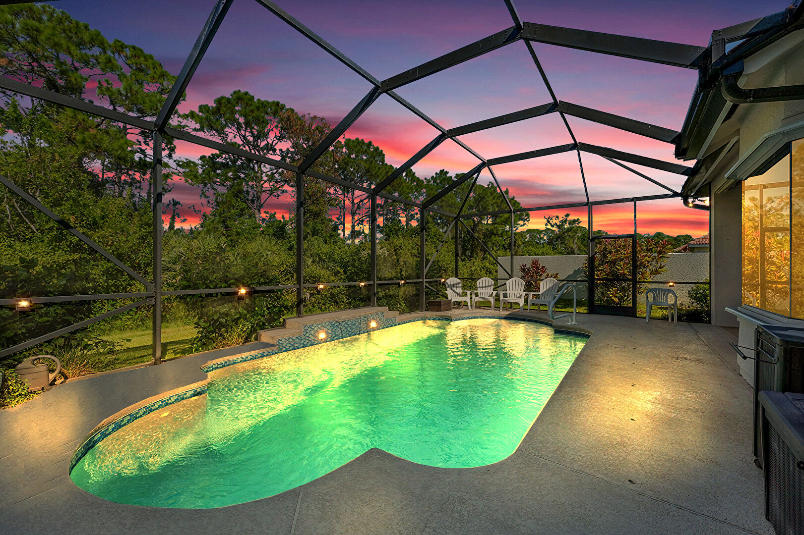 Ceiling Fan, Fence, Grill, Handrail, Lanai, Patio, Pool, Sunroom, Woods View, Hot Tub, Lanai, Pool, Woods View