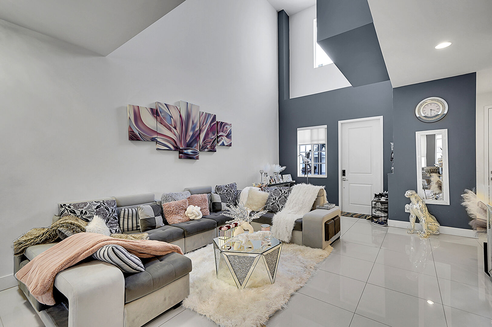 Baseboards Wall, Drywall, Natural Light, Tile Floor, High Ceiling