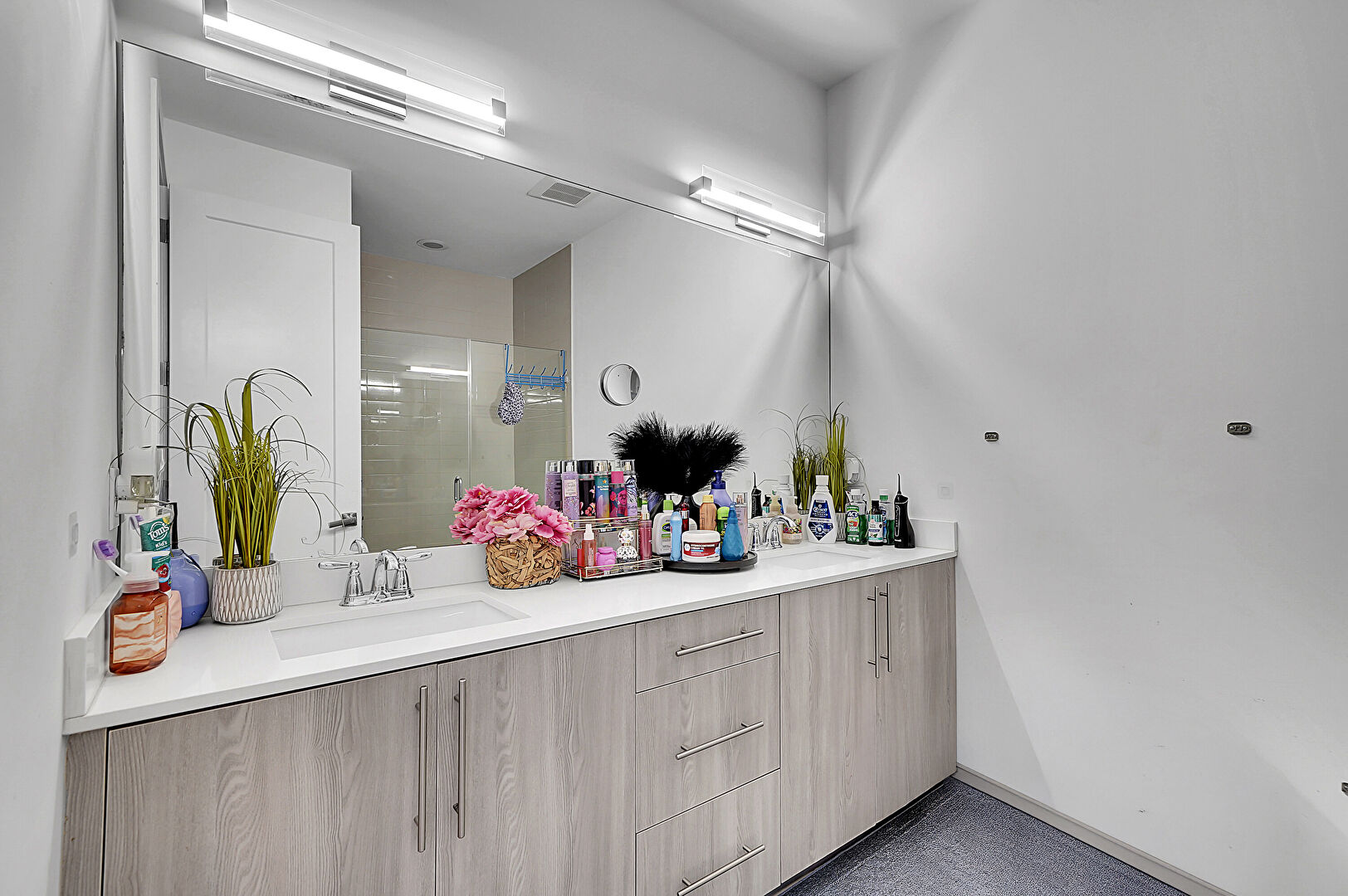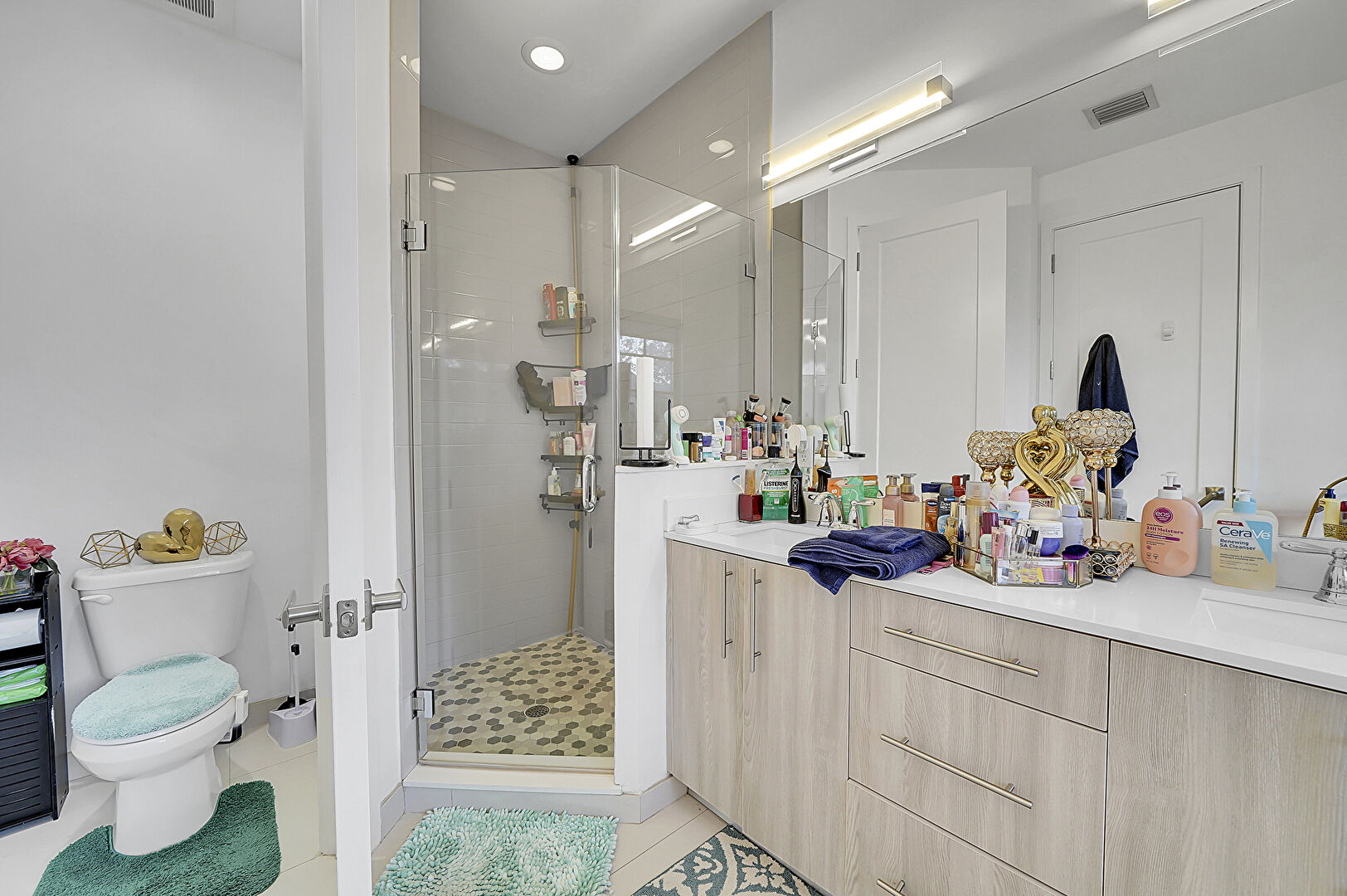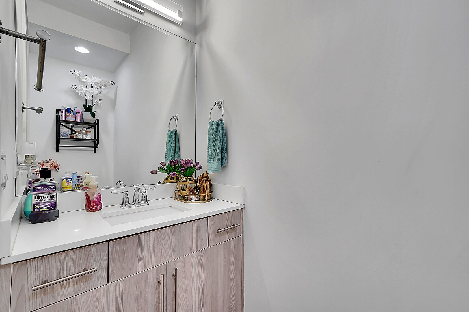 Drywall, Full Bathroom, Natural Light, Recessed Lighting, Tile Floor, Vanity, Vent, Full Bathroom, Vanity