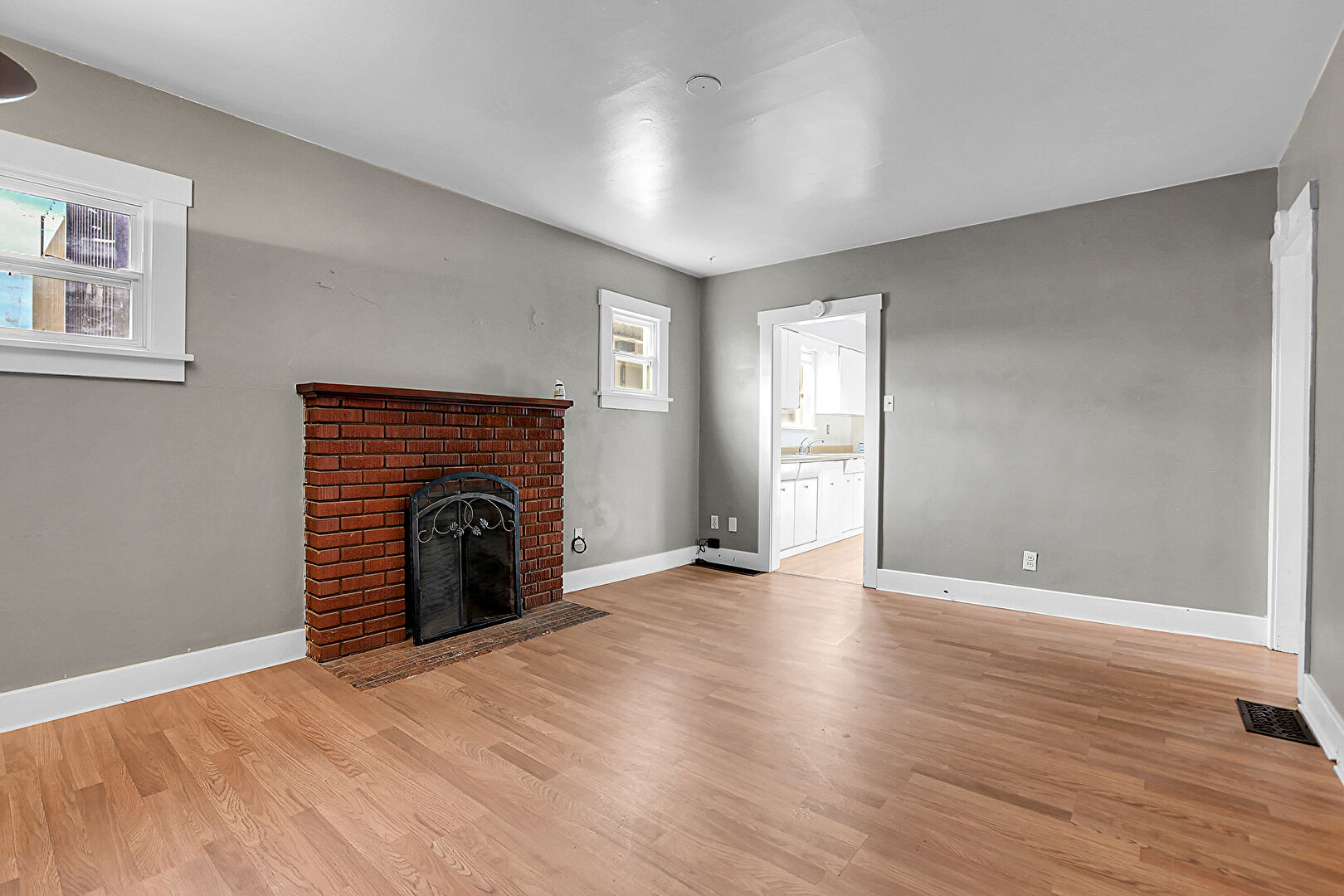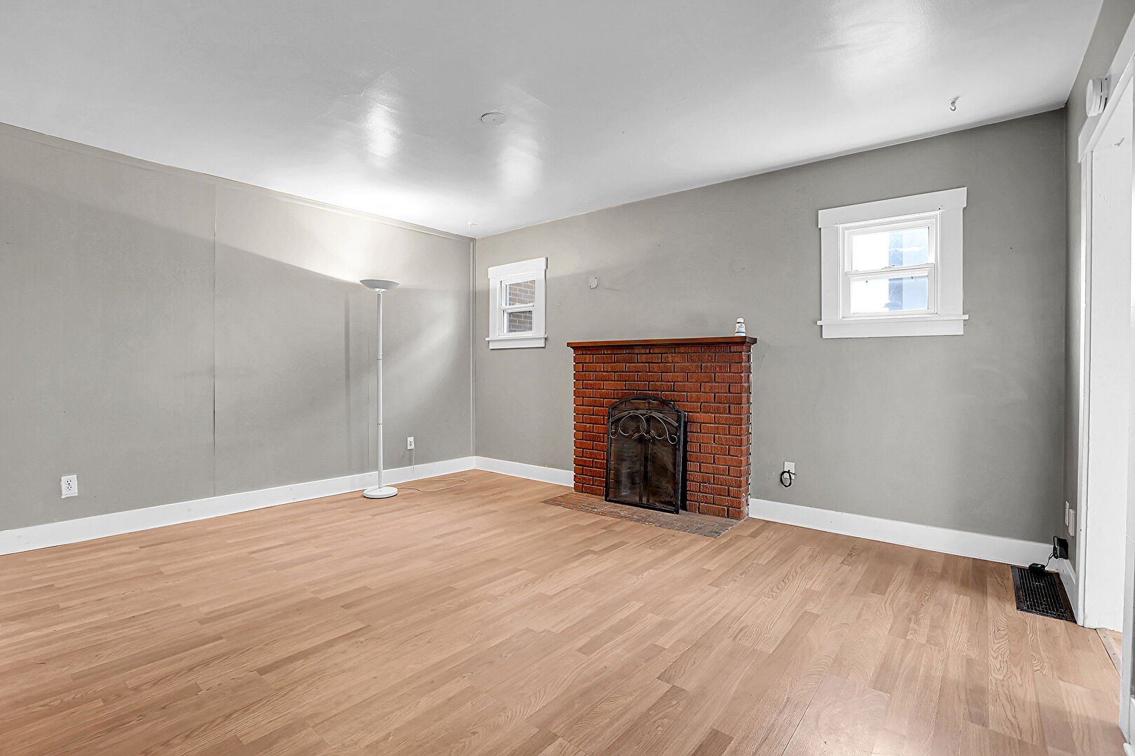 Baseboards Wall, Drywall, Fireplace, Natural Light, Smoke Carbon Monoxide Detector, Vent, Wood Finish Floor, Natural Light, Vent