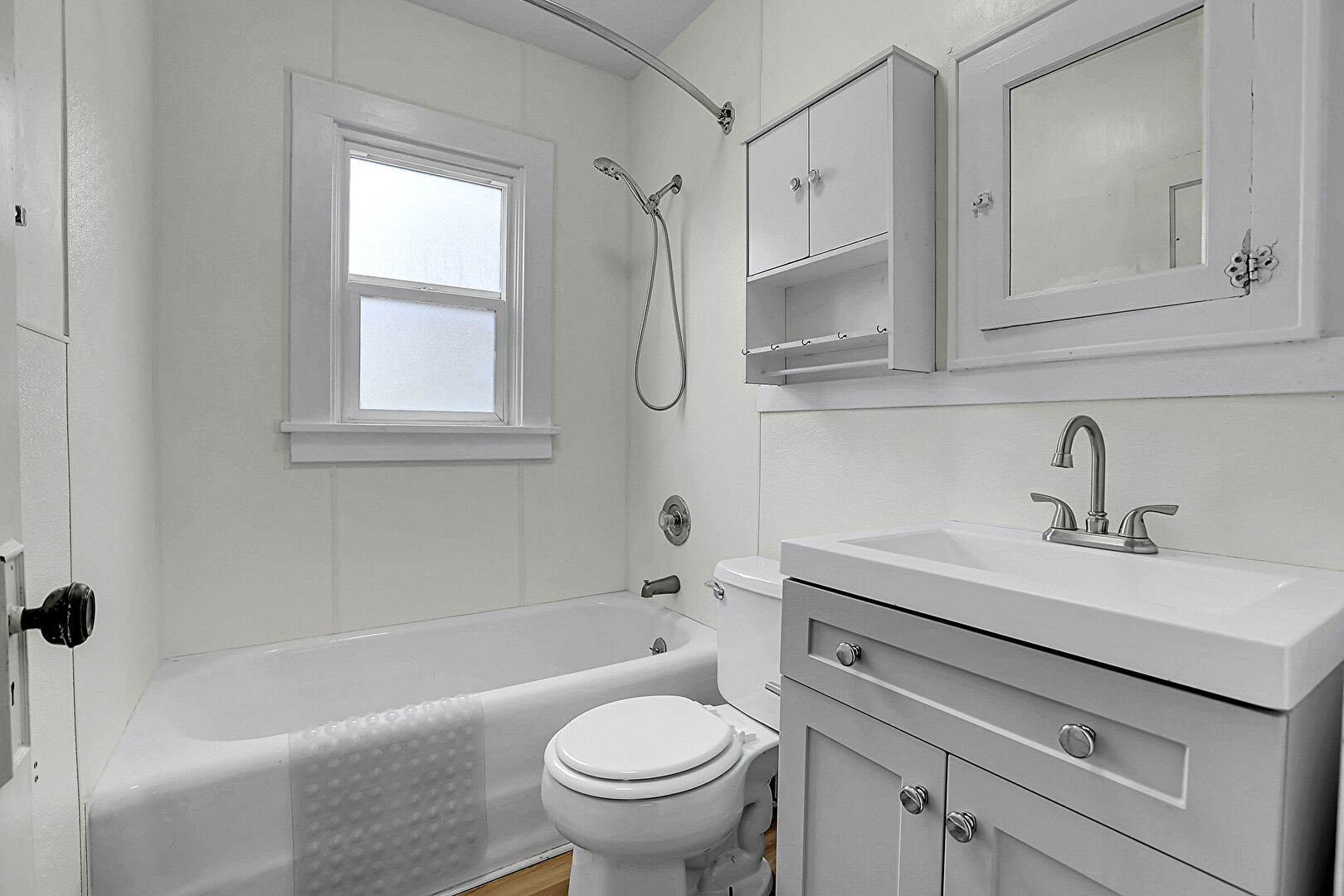 Combined Bath Shower, Drywall, Full Bathroom, Half Bathroom, Natural Light, Baseboards Wall, Half Bathroom, Vanity