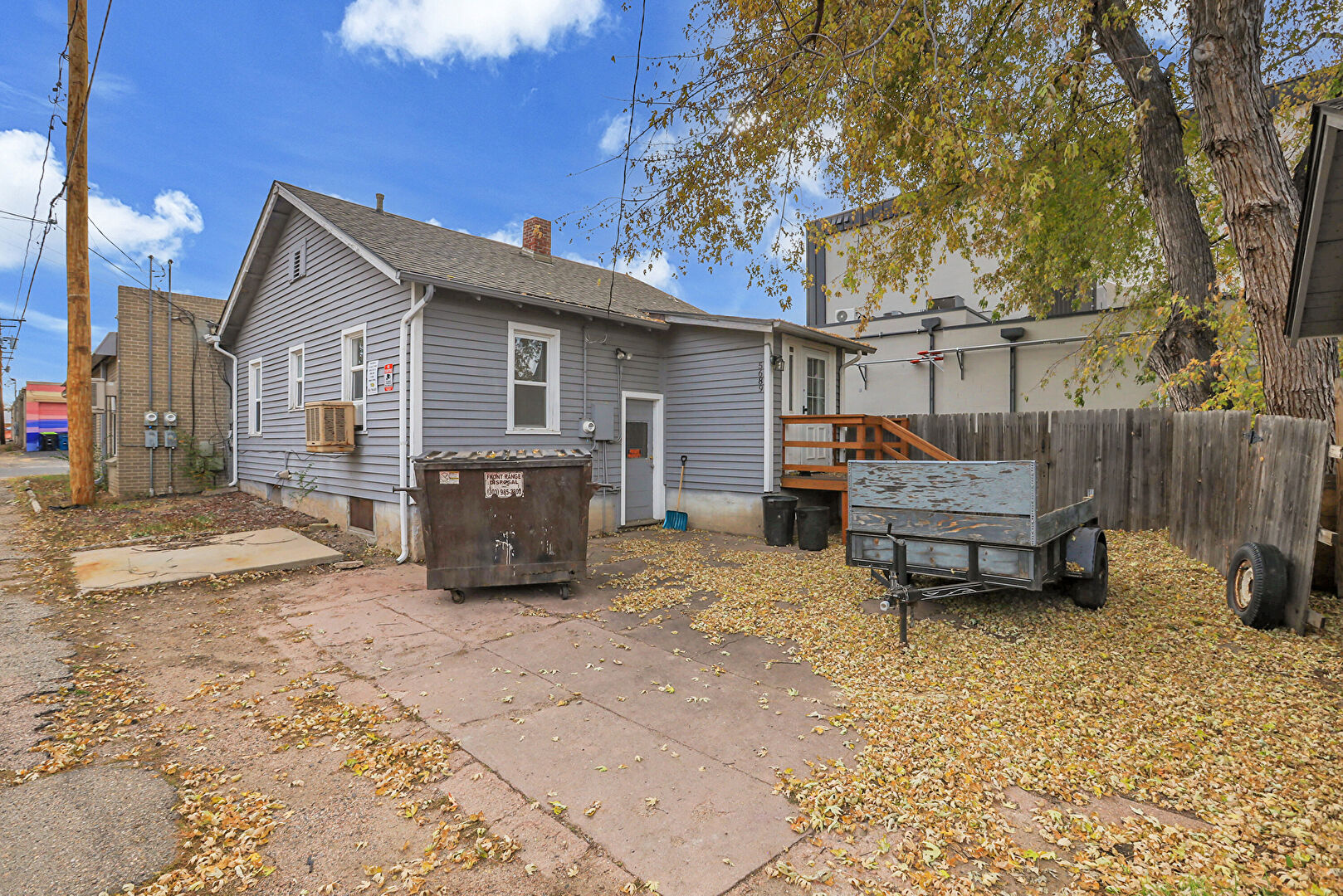 Balcony, Chimney, Concrete Foundation, Downspout, Fence, Horizontal Siding, Outdoor Structure, Patio, Shed, Stairs, Stucco Siding, Window Mounted Ac, Gutters, Horizontal Siding