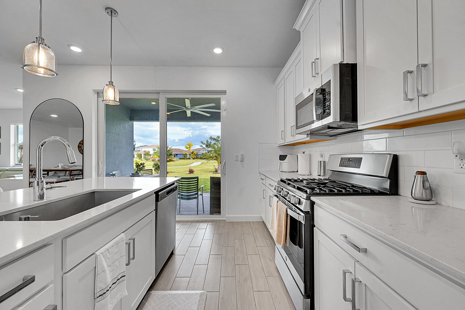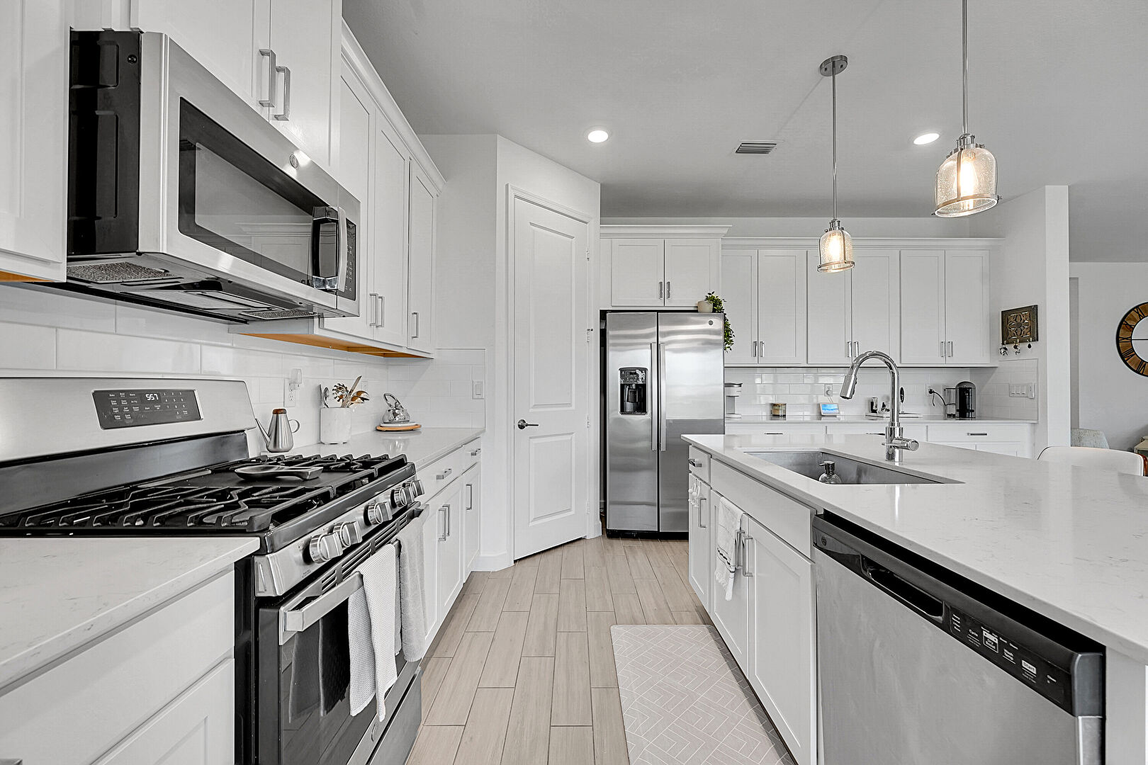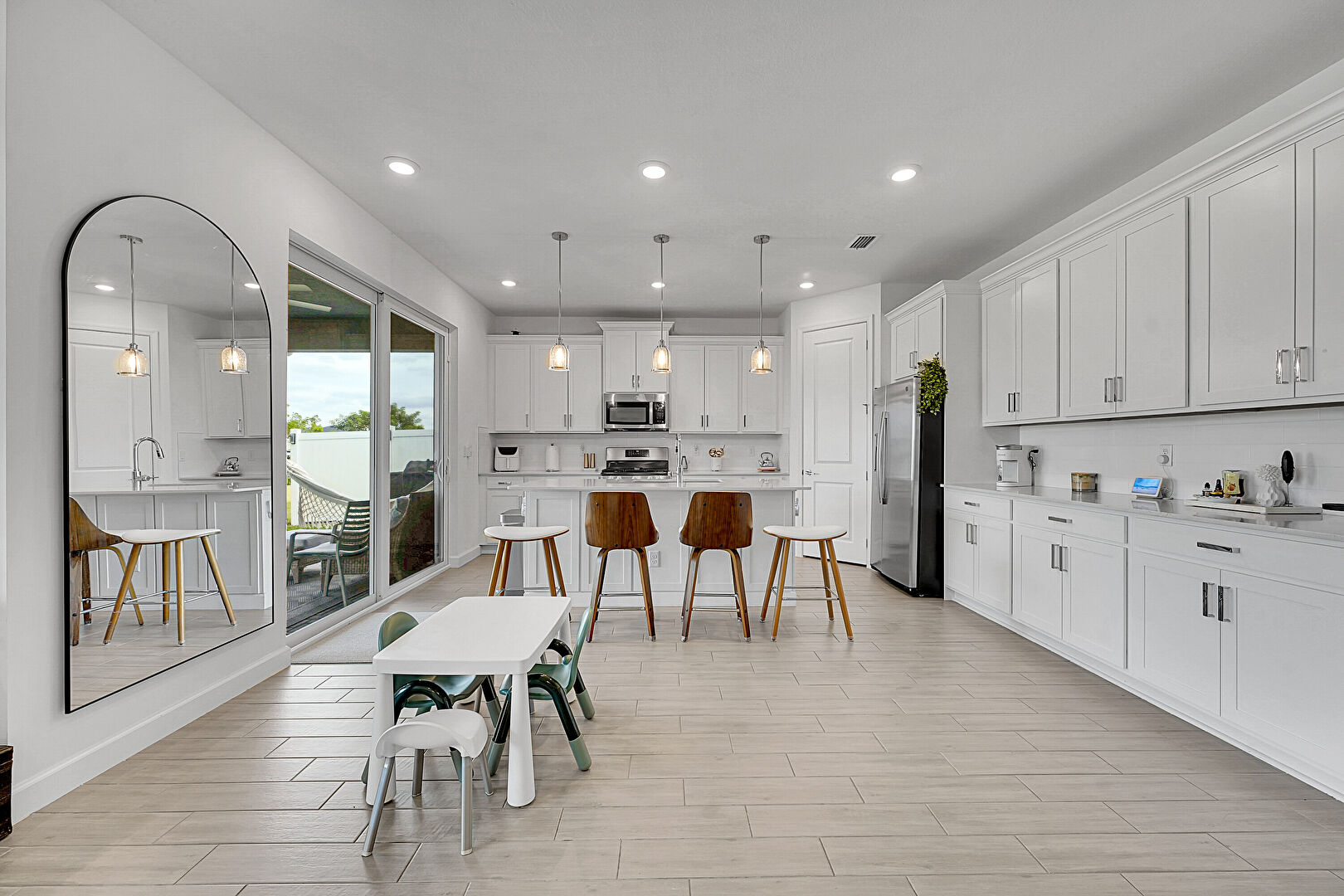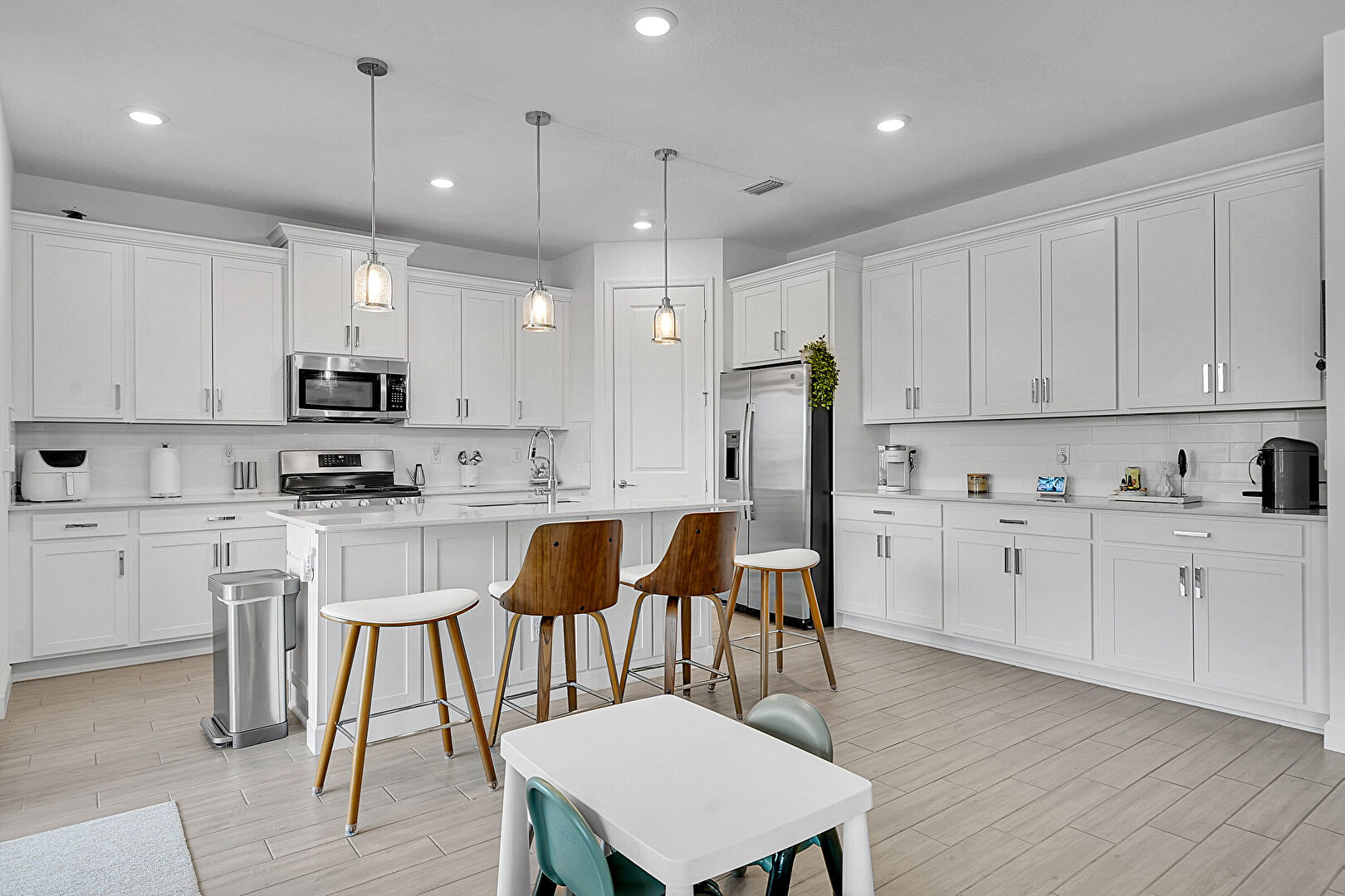 Baseboards Wall, Ceiling Fan, Crown Molding Cabinets, Drywall, Kitchen Bar, Kitchen Island, L Shaped Kitchen, Natural Light, Pendant Lighting, Recessed Lighting, Shaker Cabinets, Stone Countertops, Vent, Wood Finish Floor, Natural Light, Shaker Cabinets, Stone Countertops, Vent