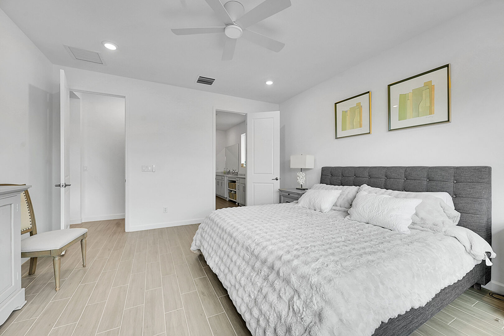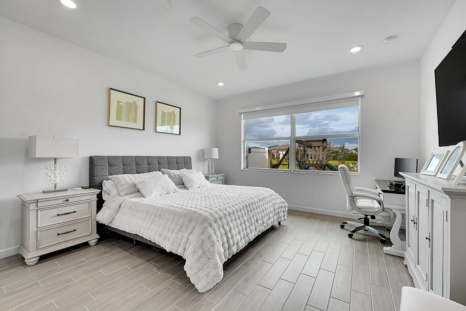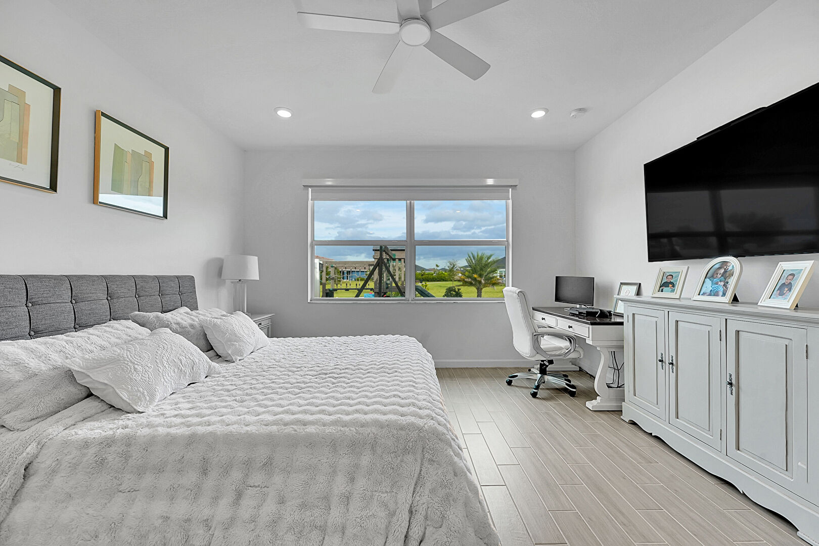 Baseboards Wall, Ceiling Fan, Drywall, Ensuite Bathroom, Natural Light, Office Area, Recessed Lighting, Vent, Wood Finish Floor, Ceiling Fan, Recessed Lighting, Wood Finish Floor