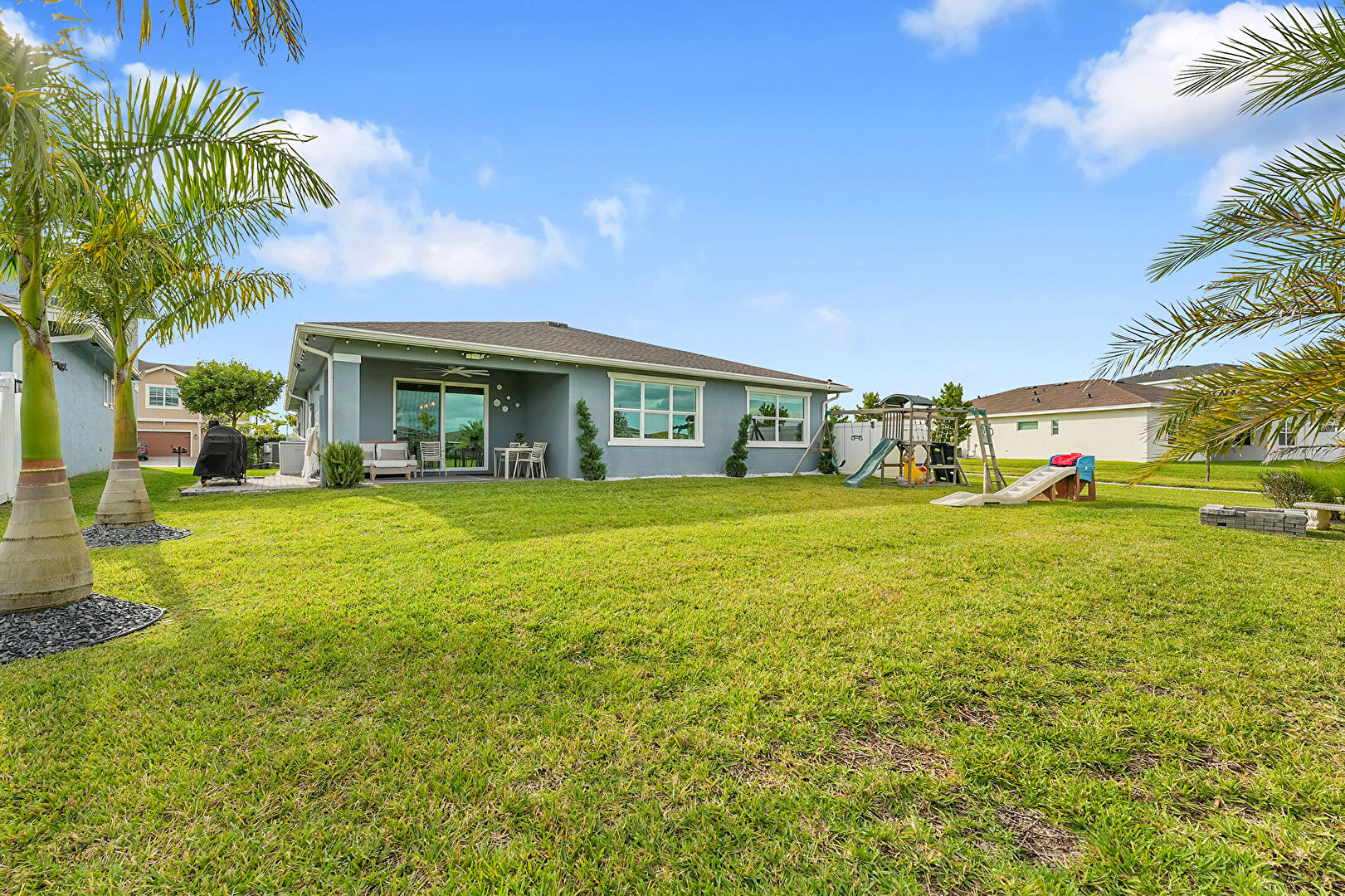 Ceiling Fan, Gutters, Lawn, Patio, Playground, Stucco Siding, Downspout