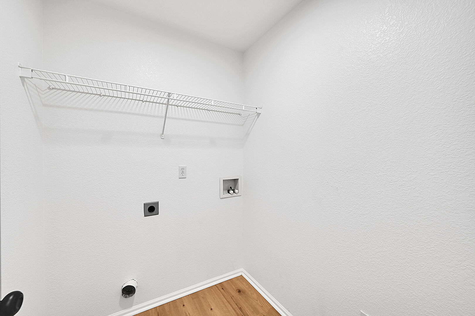 Electric Dryer Hookup, Laundry, Washer Hookup, Wood Finish Floor, Baseboards Wall