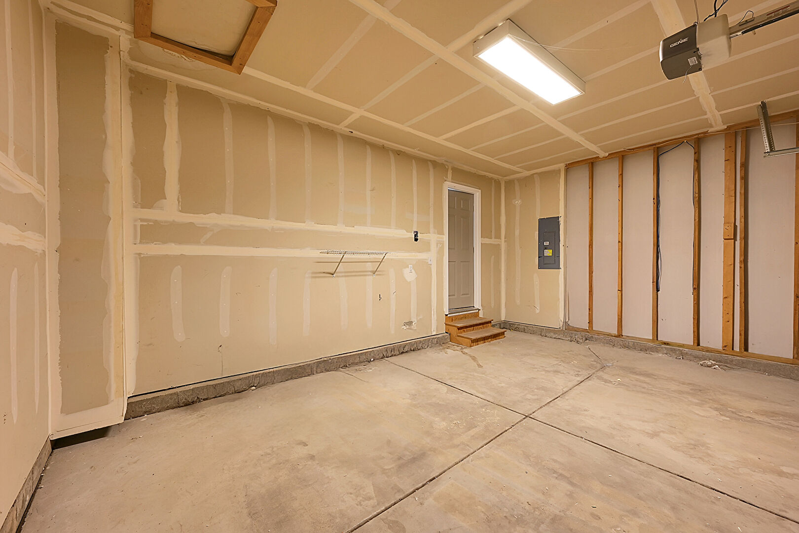 Concrete Floor, Drywall, Electric Panel, Garage, Garage Door Opener, Drywall, Garage Door Opener