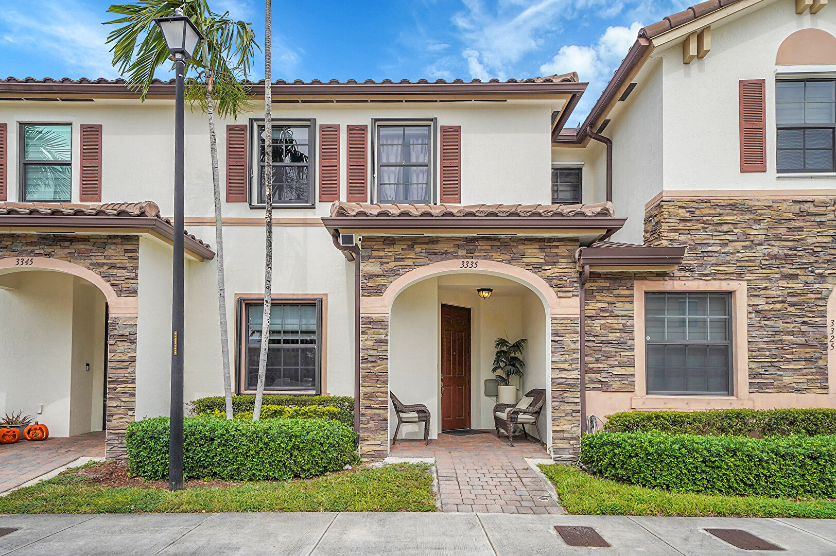 Downspout, Gutters, Parking Lot, Stone Siding, Stucco Siding, Tile Roof, Residential View, Tile Roof