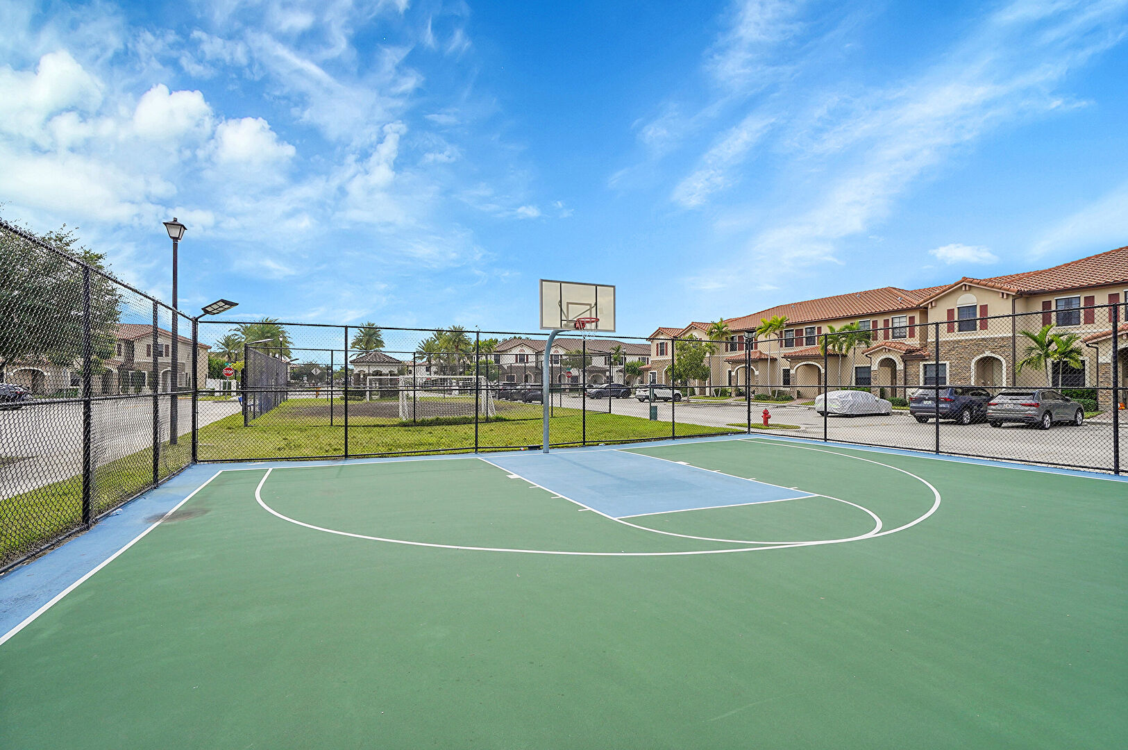 Basketball Court, Fence, Natural Light, Residential View, Lawn