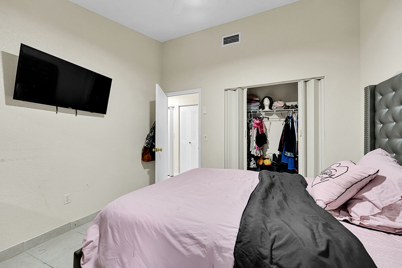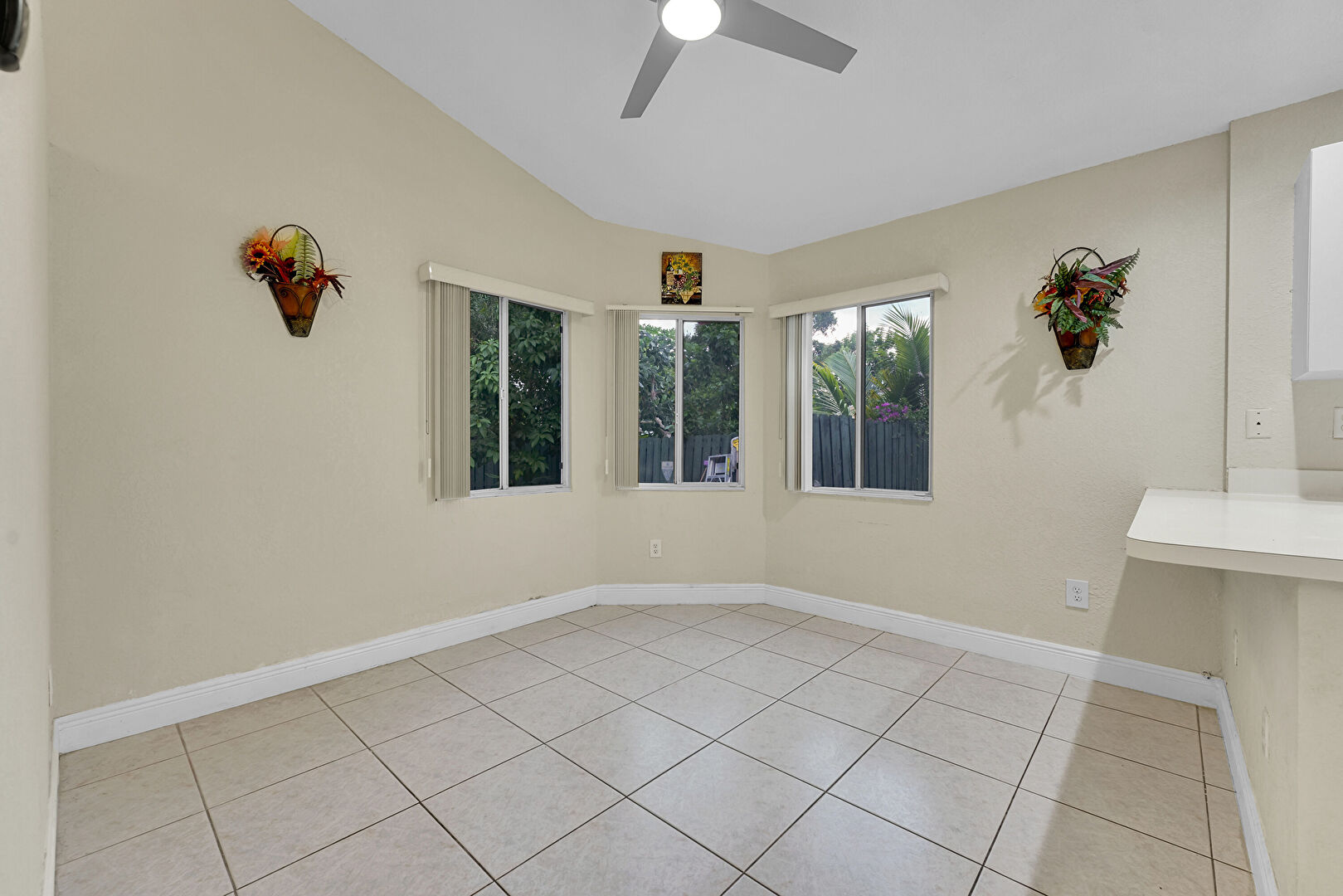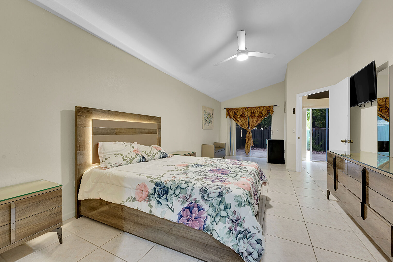 Access To Exterior, Baseboards Wall, Ceiling Fan, Closet, Drywall, Natural Light, Tile Floor, Vaulted Ceiling, Vent, Baseboards Wall, Ceiling Fan, Natural Light, Tile Floor, Vent
