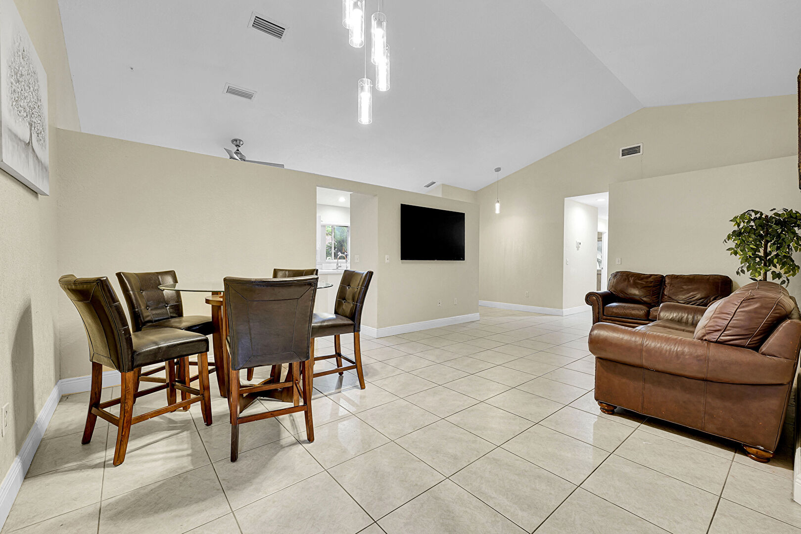 Baseboards Wall, Cathedral Ceiling, Drywall, High Ceiling, Natural Light, Tile Floor, Vaulted Ceiling, Baseboards Wall, Vent