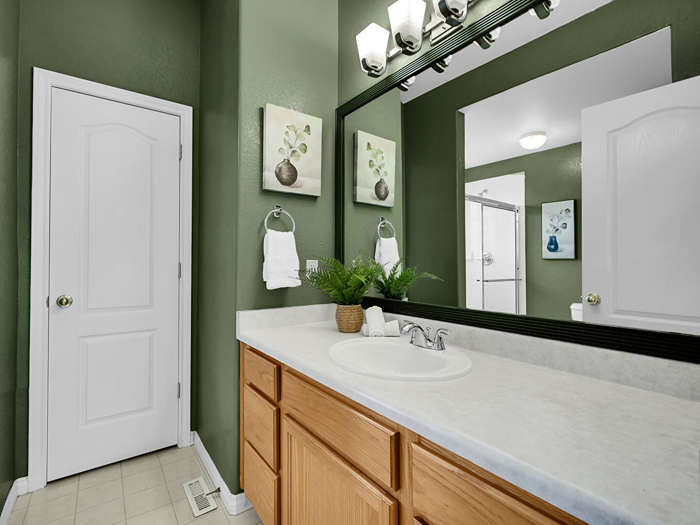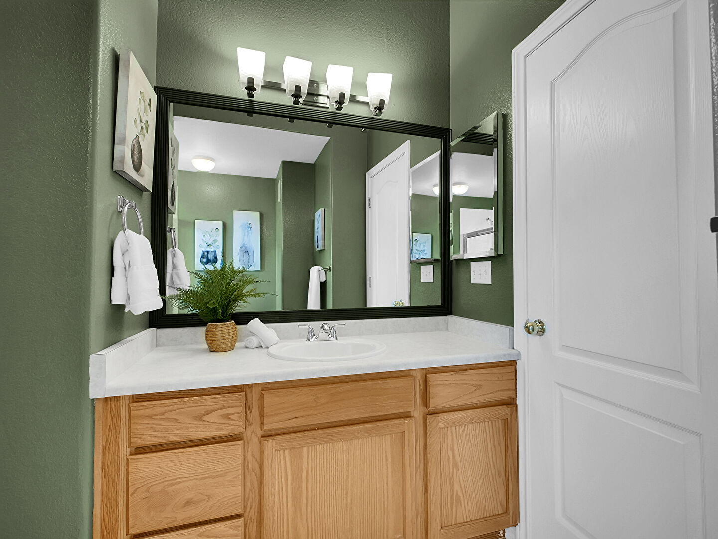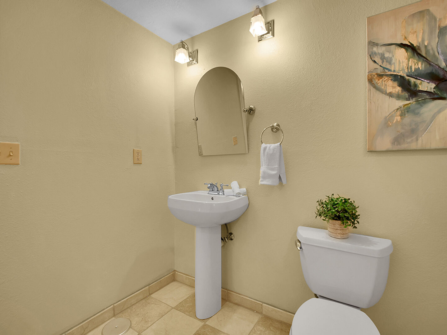 Baseboards Wall, Drywall, Half Bathroom, Natural Light, Tile Floor, Vanity, Vent, Full Bathroom, Vanity