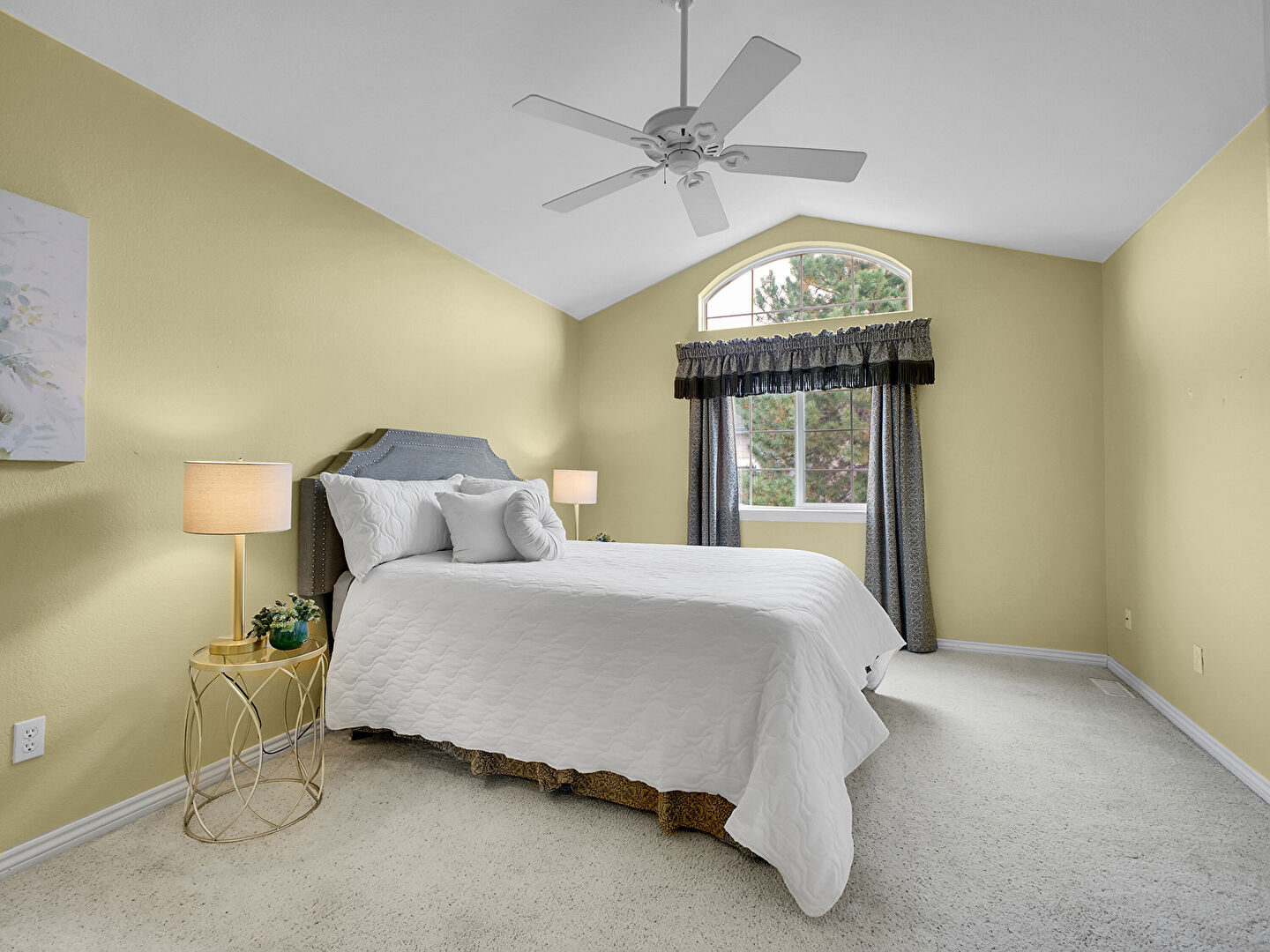 Baseboards Wall, Carpet, Cathedral Ceiling, Ceiling Fan, Drywall, Ensuite Bathroom, Natural Light, Smoke Carbon Monoxide Detector, Vaulted Ceiling, Vent, Baseboards Wall, Walk In Closet