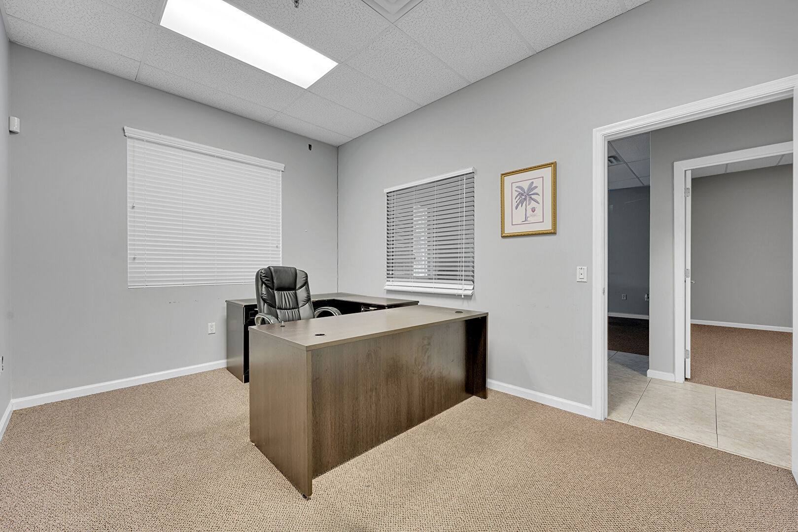 Carpet, Drop Ceiling, Drywall, Baseboards Wall
