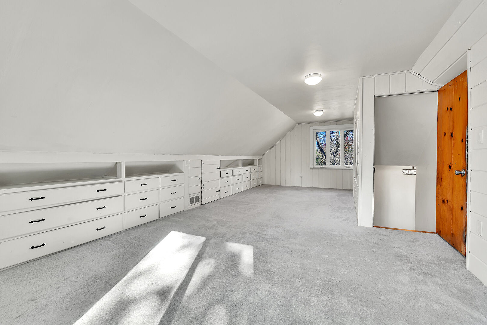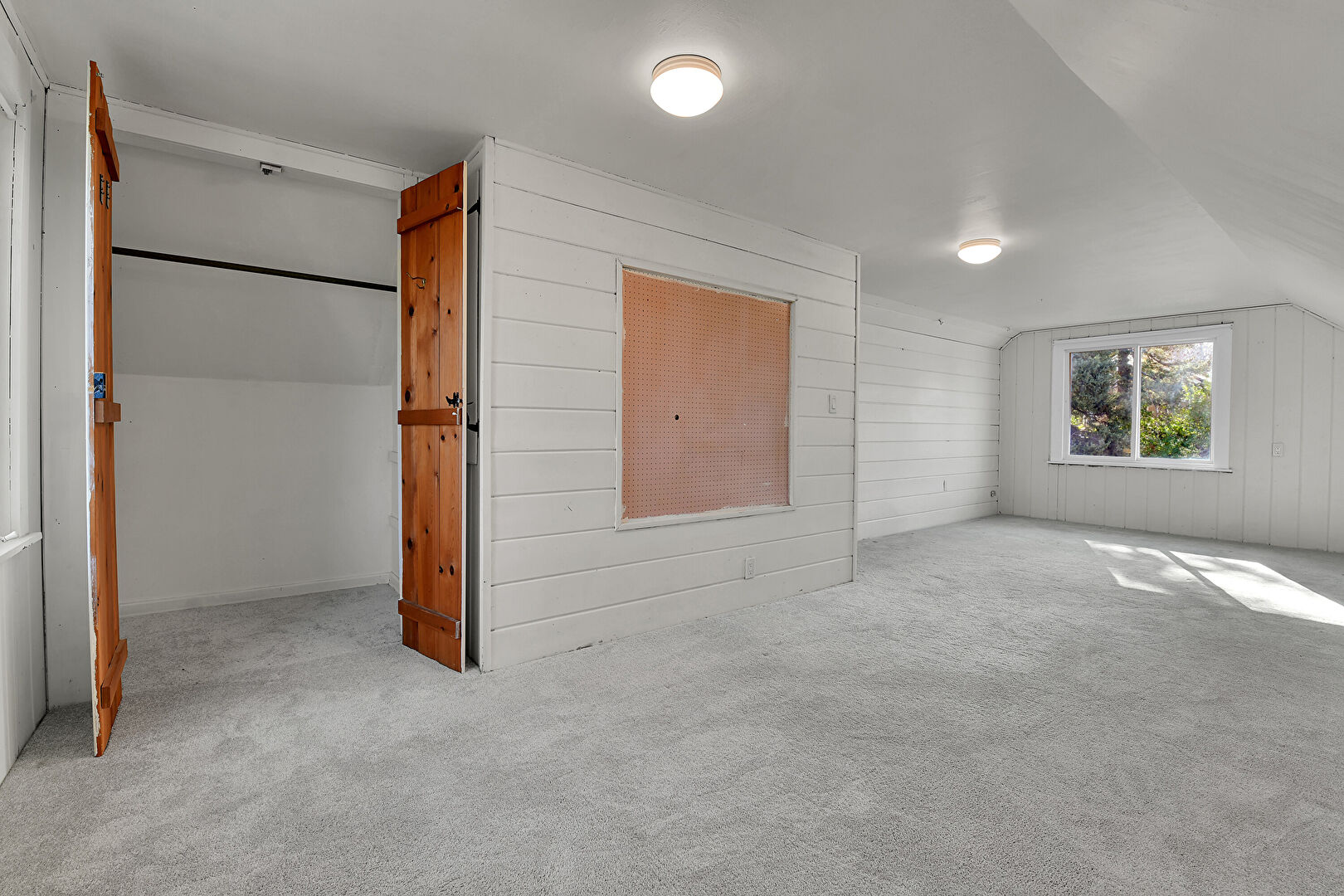 Baseboards Wall, Bonus Room, Built In Shelves, Carpet, Cathedral Ceiling, Ceiling Fan, Closet, Drywall, Natural Light, Vaulted Ceiling, Vent, Wood Finish Floor, Wood Wall, Ceiling Fan, Drywall, Vaulted Ceiling, Wood Finish Floor
