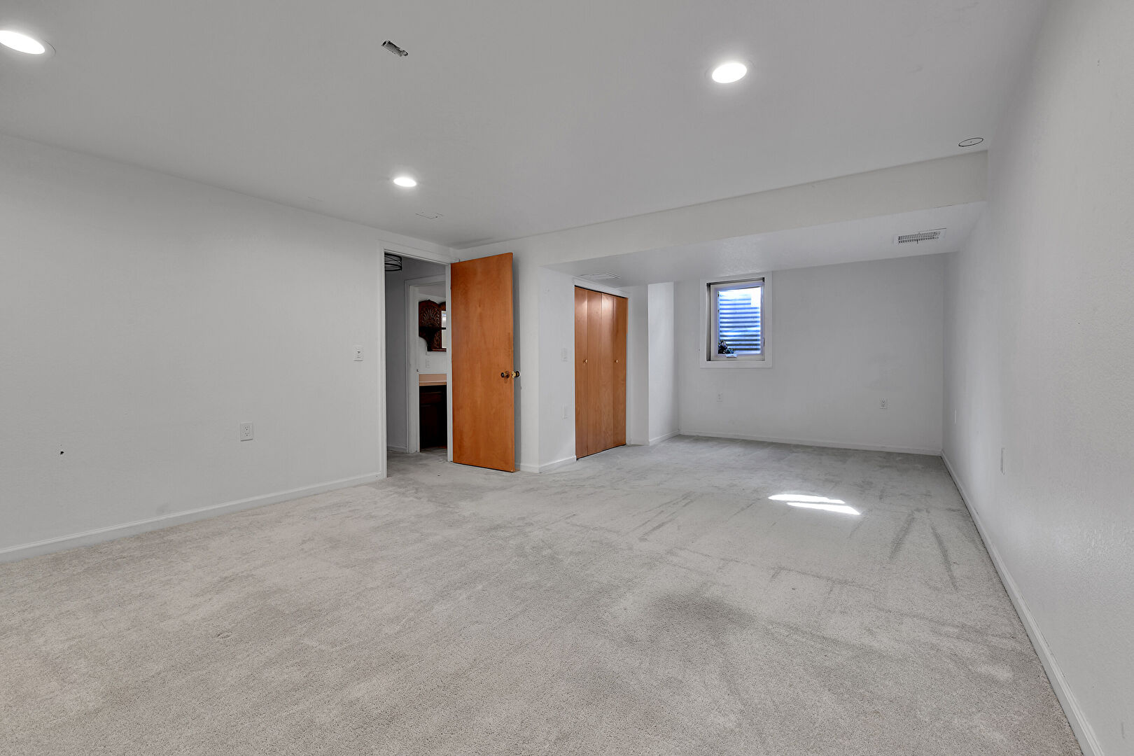 Baseboards Wall, Basement, Carpet, Drywall, Natural Light, Recessed Lighting, Vent