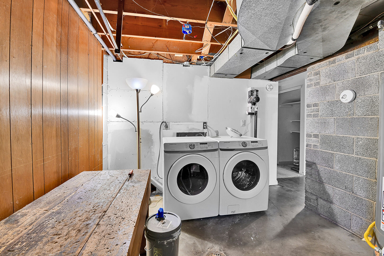 Basement, Brick Wall, Fire Extinguisher, Stairs, Concrete Block Wall
