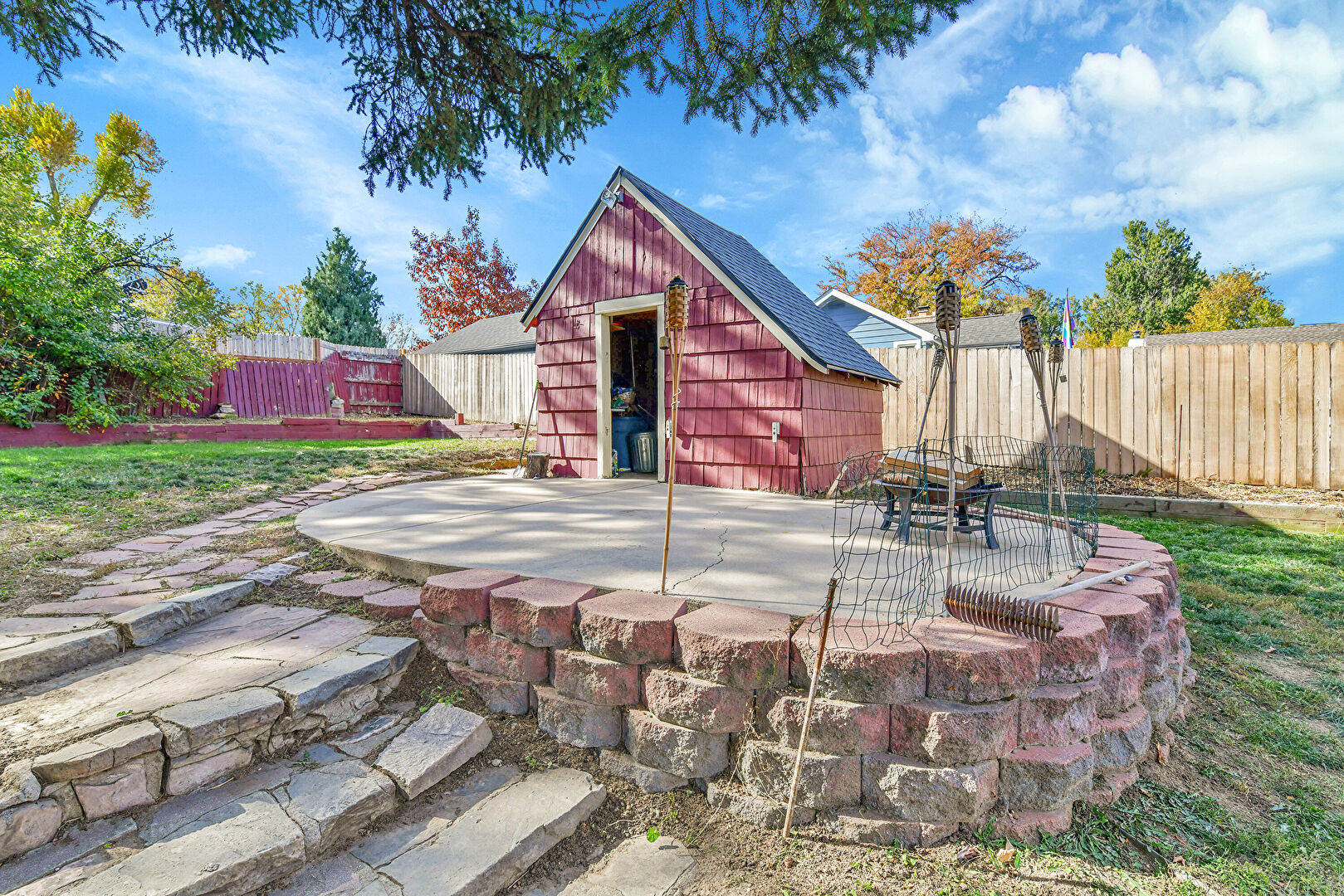 Fence, Lawn, Patio, Shed, Outdoor Structure