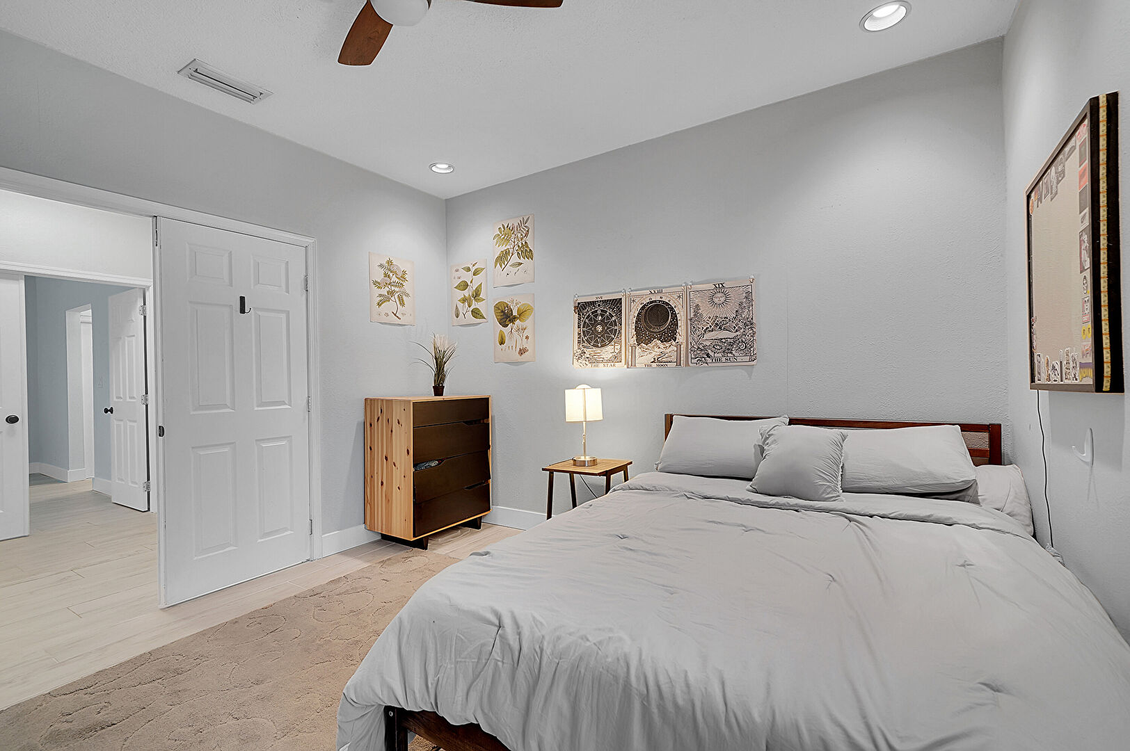 Baseboards Wall, Ceiling Fan, Closet, Drywall, Natural Light, Recessed Lighting, Vent, Wood Finish Floor, Ceiling Fan, Drywall, Recessed Lighting, Vent