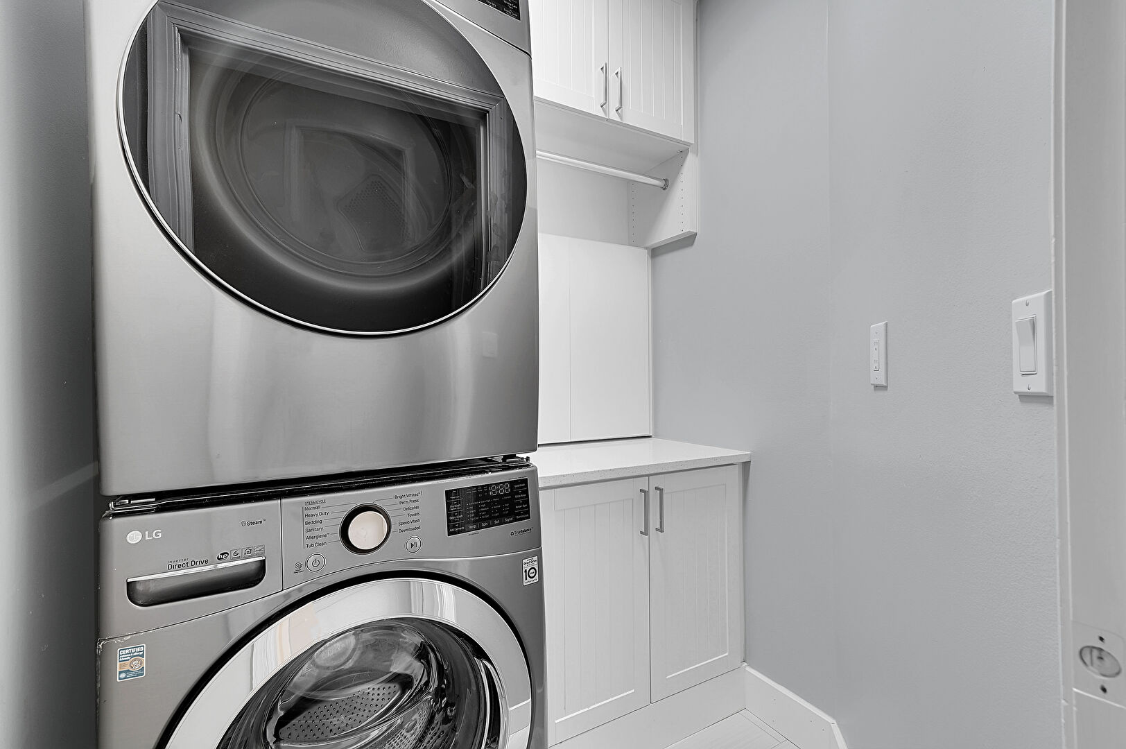 Baseboards Wall, Laundry, Tile Floor, Drywall