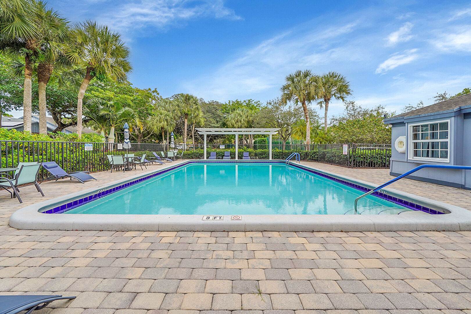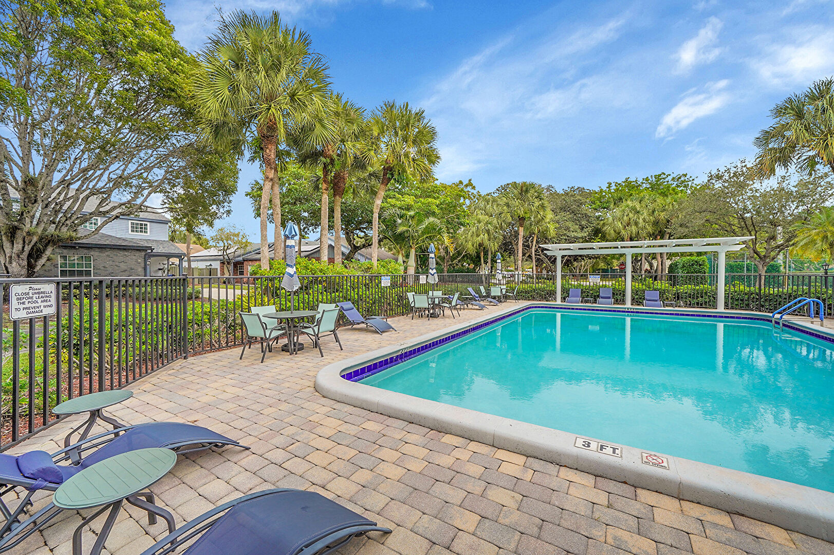 Fence, Handrail, Outdoor Dining Area, Patio, Pergola, Pool, Fence, Pergola, Pool