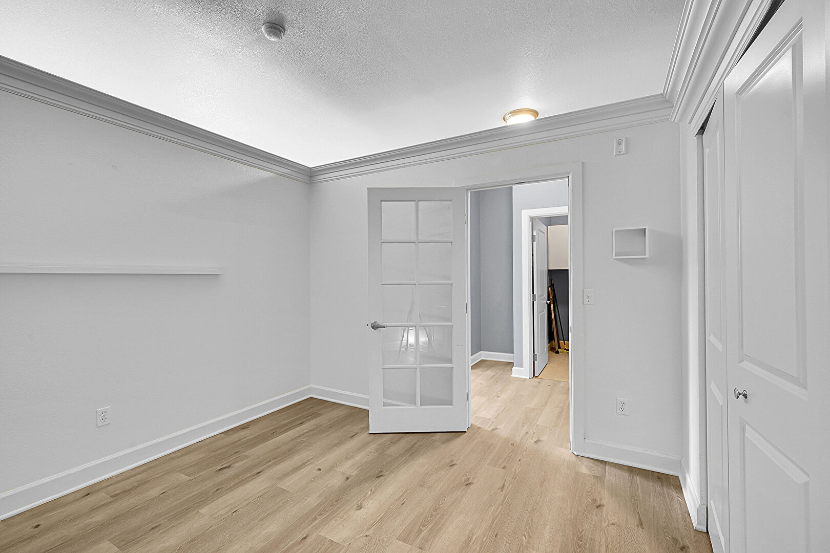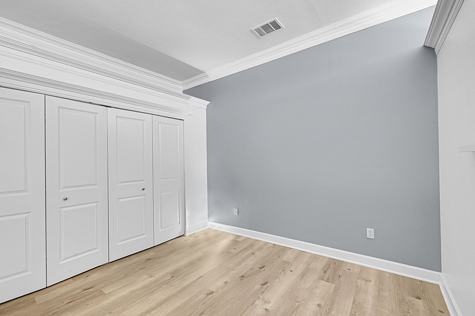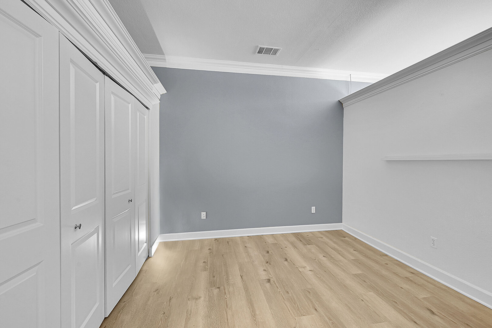 Baseboards Wall, Closet, Crown Molding, Drywall, Smoke Carbon Monoxide Detector, Textured Ceiling, Vent, Wood Finish Floor, Baseboards Wall, Vent, Wood Finish Floor