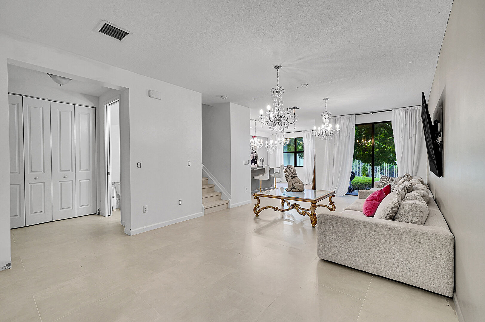 Baseboards Wall, Drywall, Natural Light, Notable Chandelier, Stairs, Textured Ceiling, Tile Floor, Vent, Baseboards Wall, Drywall, Vent