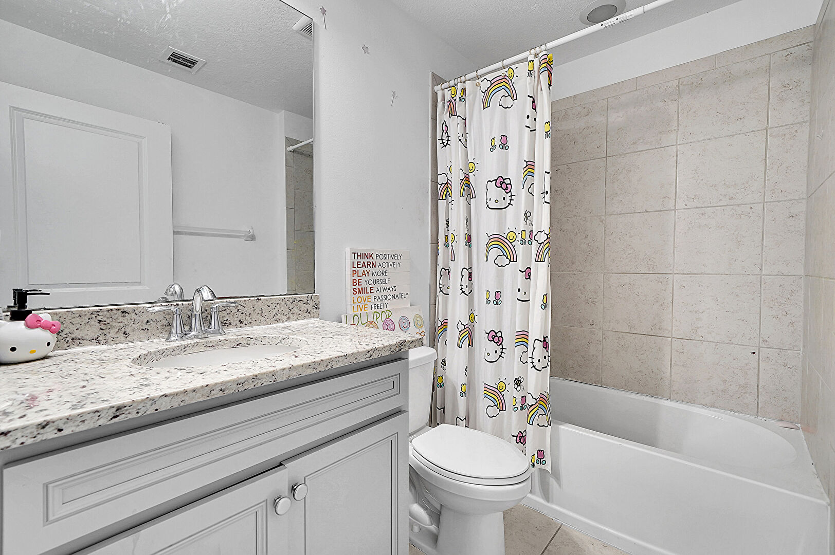 Combined Bath Shower, Double Vanity, Drywall, Full Bathroom, Half Bathroom, Recessed Lighting, Tile Floor, Vanity, Vent, Textured Ceiling, Tile Floor, Vanity