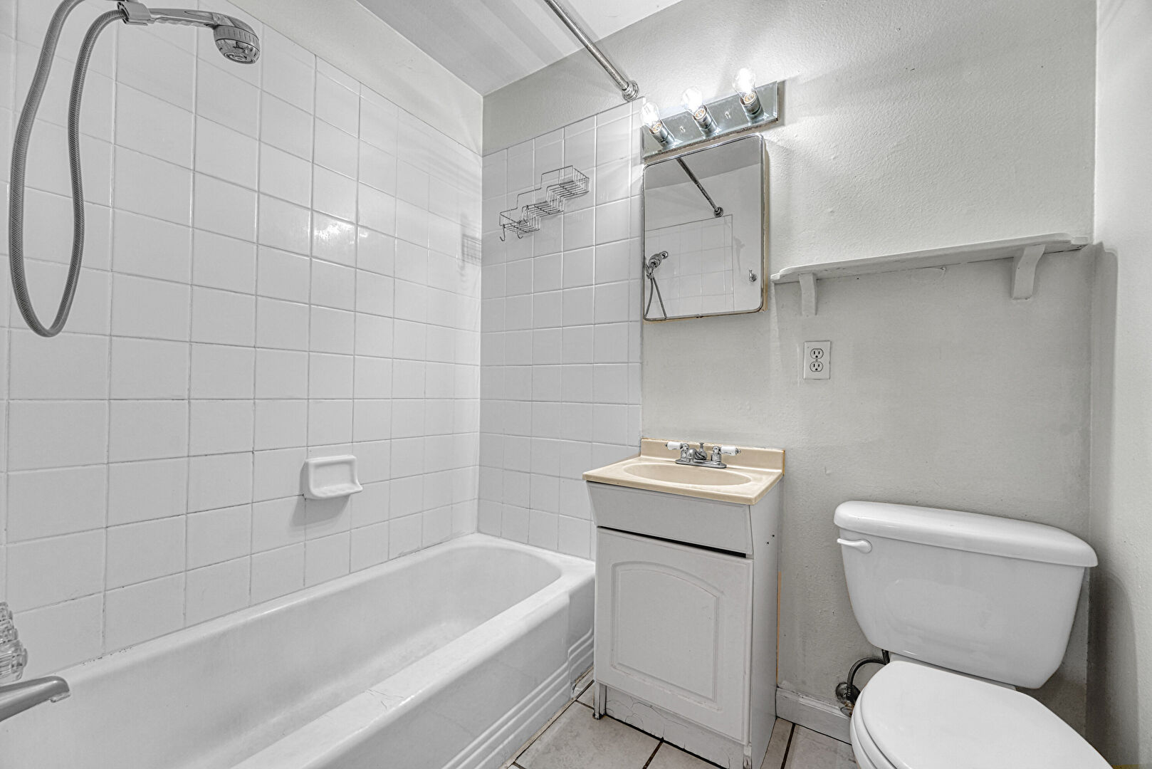 Baseboards Wall, Combined Bath Shower, Drywall, Tile Floor, Vanity, Full Bathroom