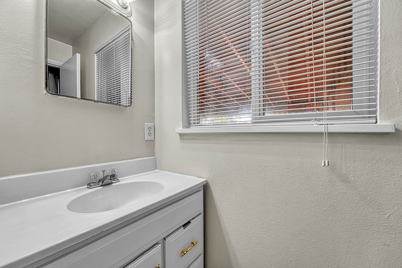 Drywall, Full Bathroom, Half Bathroom, Natural Light, Tile Floor, Vanity, Baseboards Wall, Textured Wall