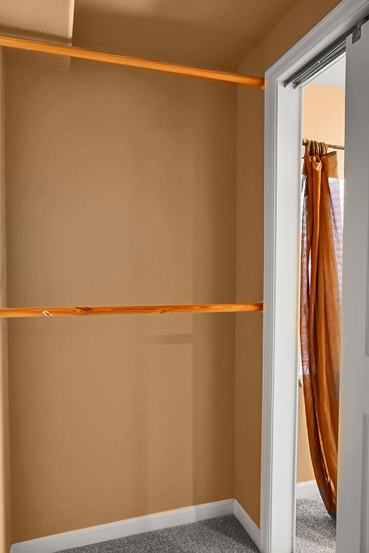 Baseboards Wall, Carpet, Closet, Drywall, Natural Light, Scuttle, Smoke Carbon Monoxide Detector, Baseboards Wall, Vent