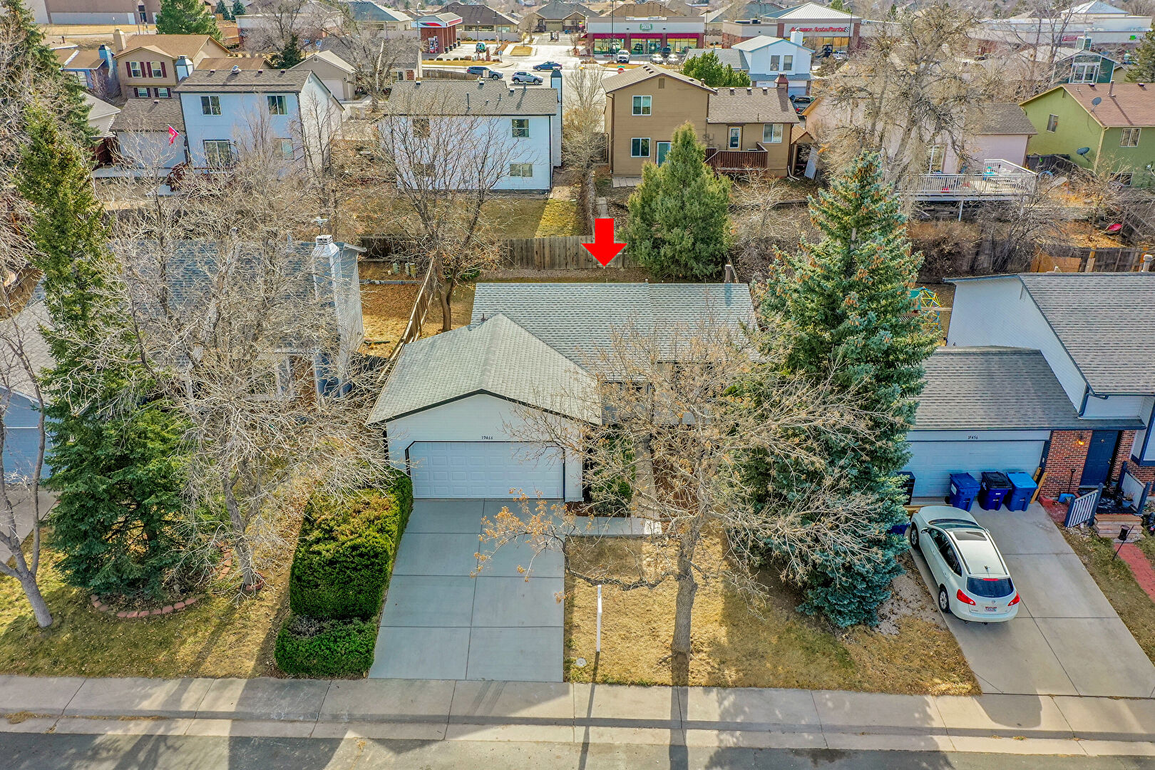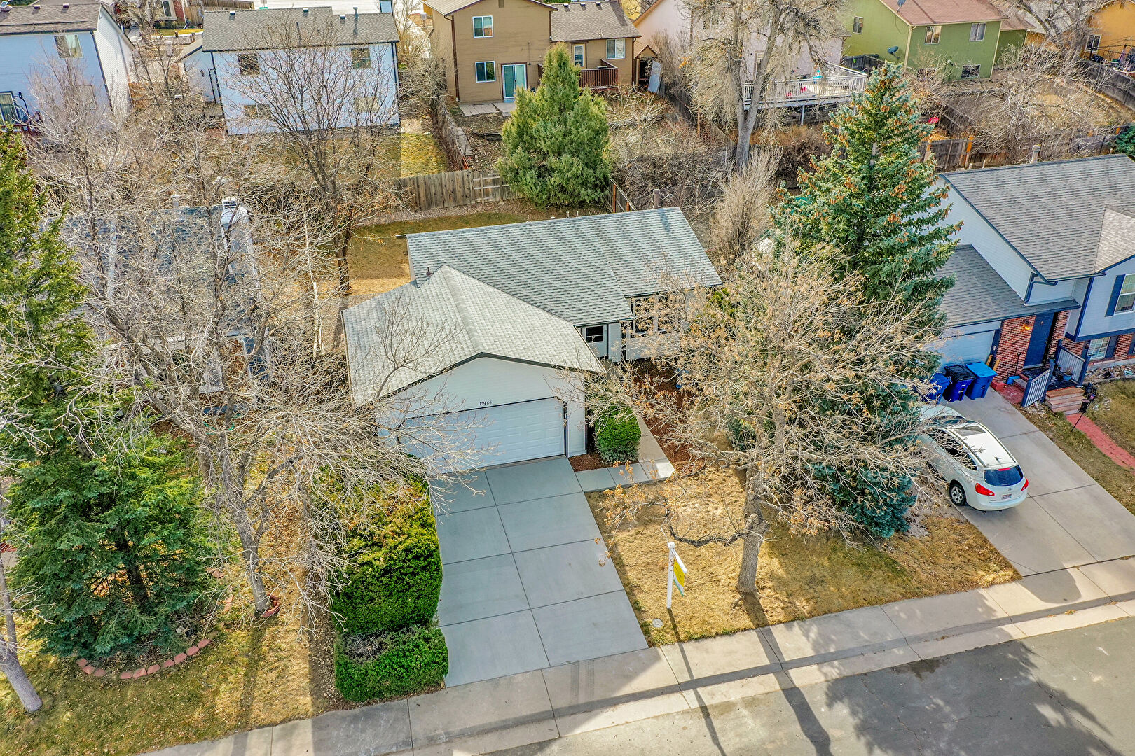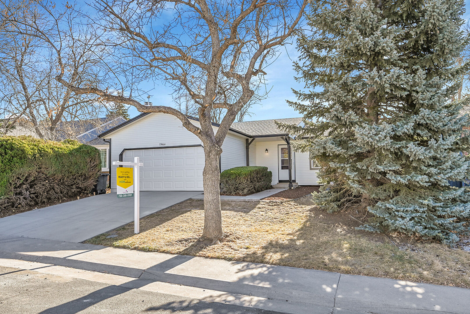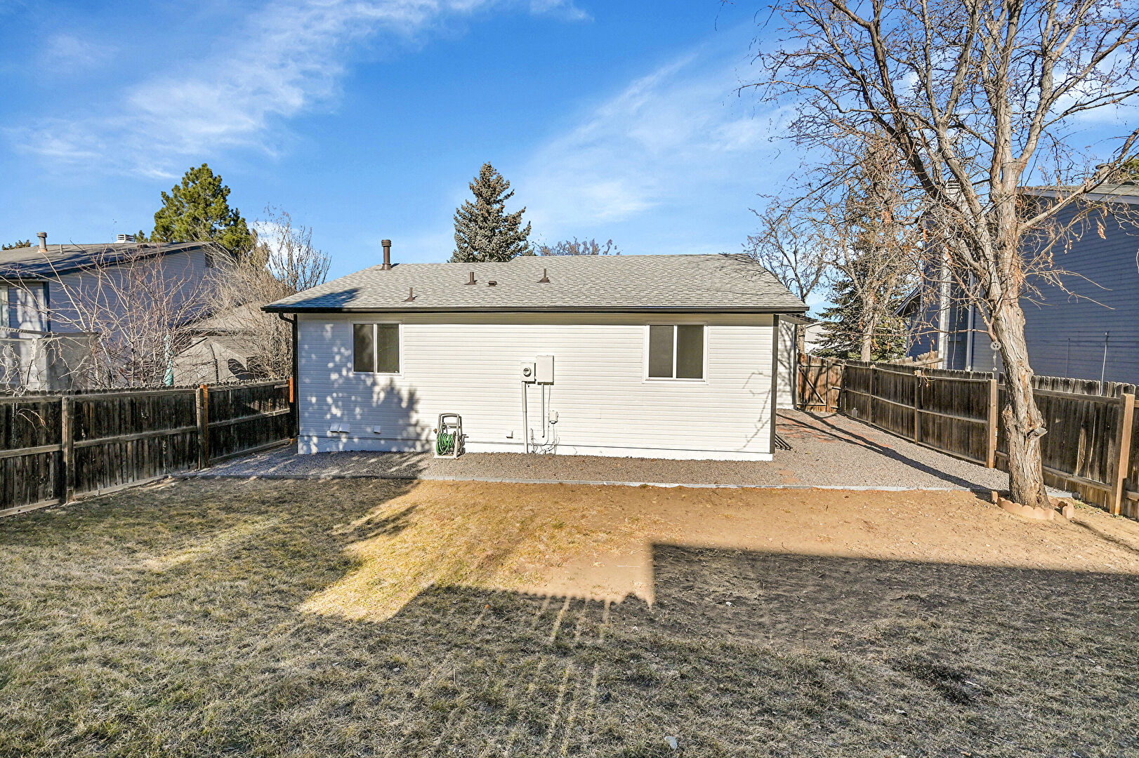 Concrete Foundation, Downspout, Driveway, Gutters, Horizontal Siding, Shingle Roof