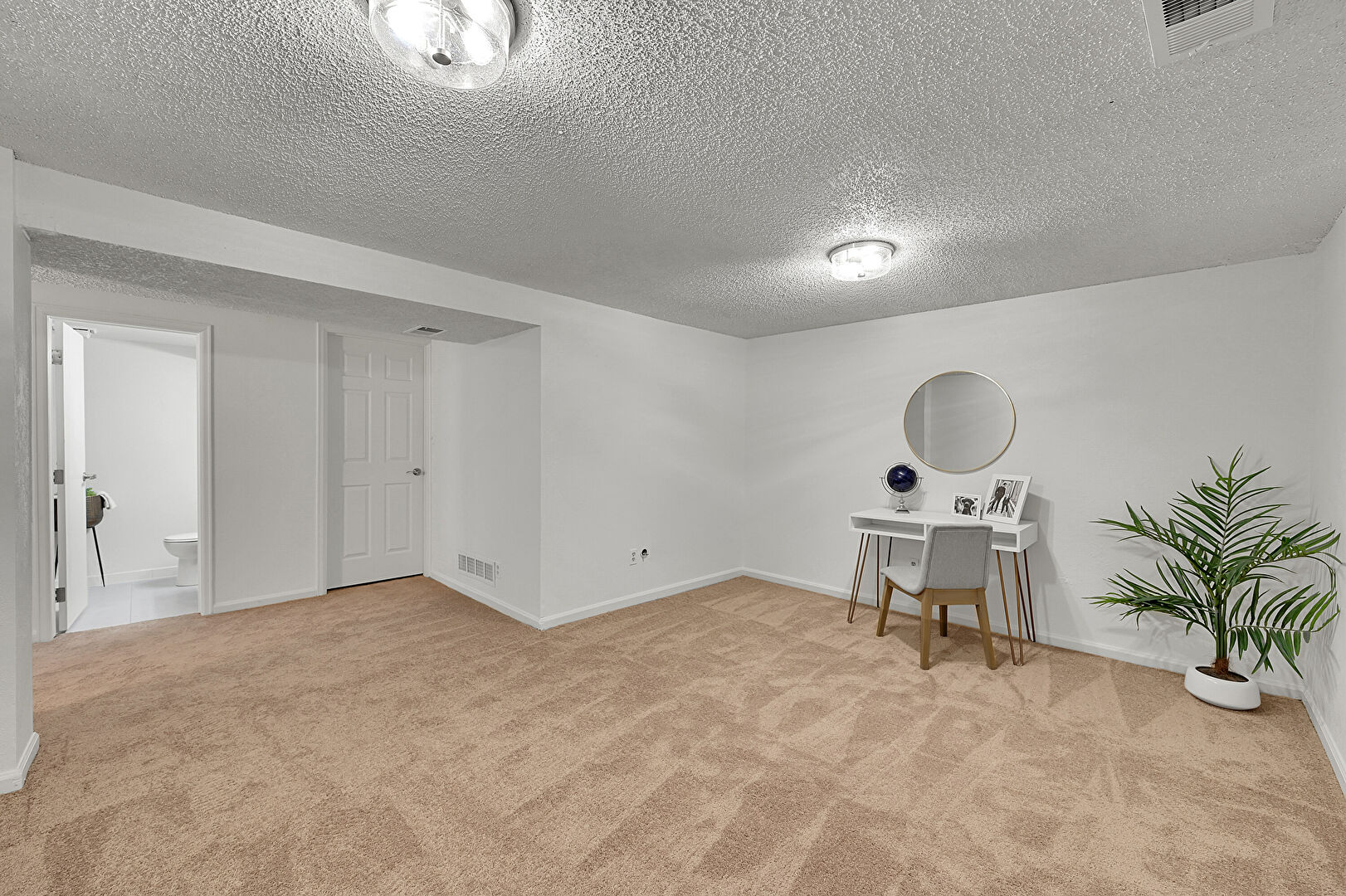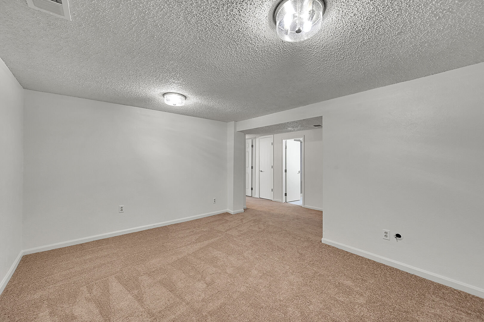 Baseboards Wall, Carpet, Drywall, Textured Ceiling, Vent, Natural Light