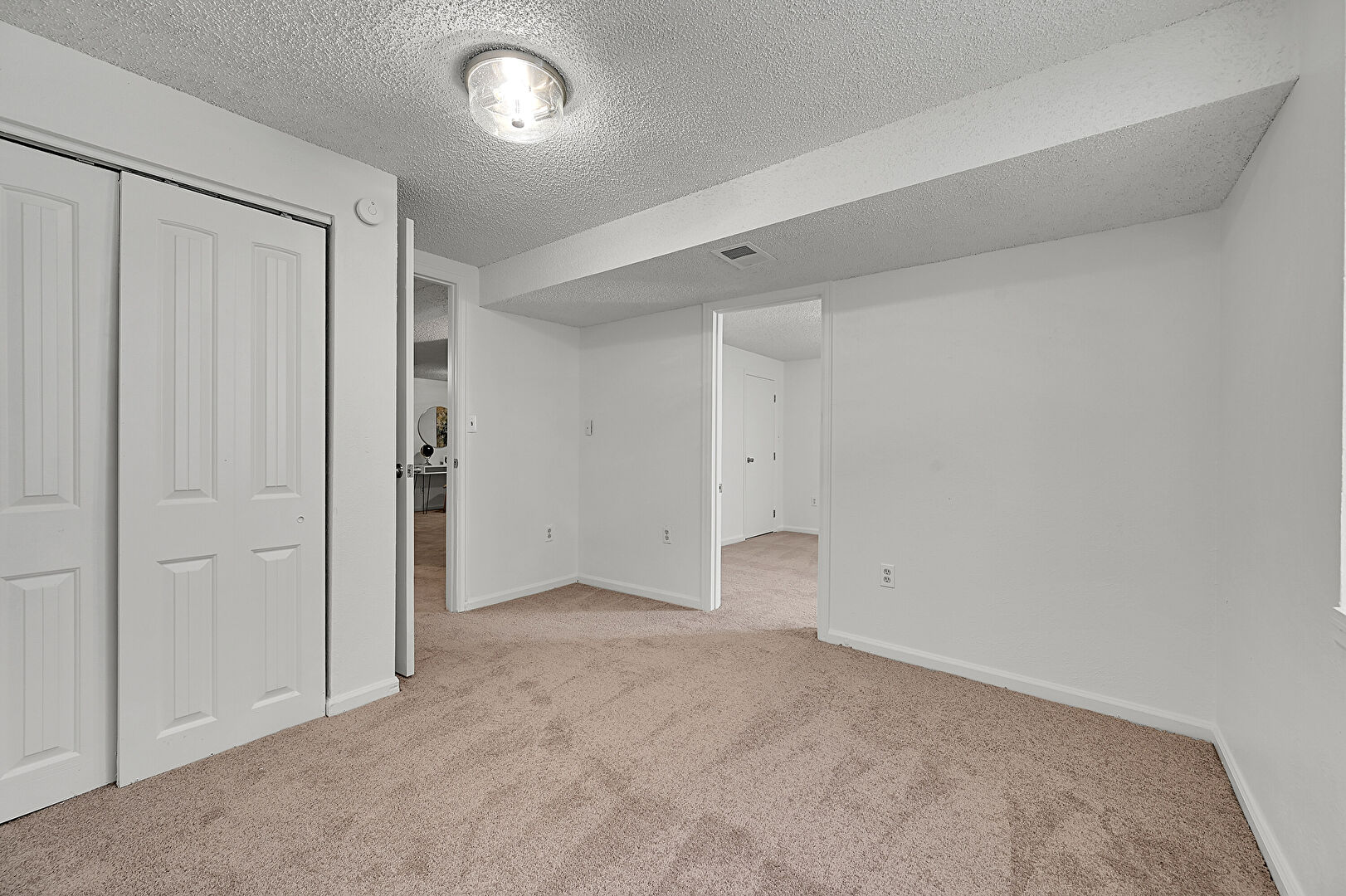 Baseboards Wall, Basement, Carpet, Closet, Drywall, Natural Light, Smoke Carbon Monoxide Detector, Textured Ceiling, Vent, Carpet, Closet, Drywall, Natural Light, Textured Ceiling