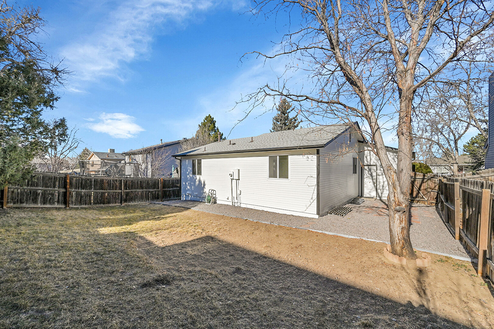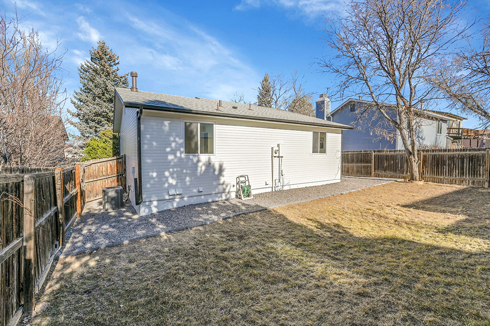 Central Ac, Chimney, Concrete Foundation, Downspout, Fence, Gutters, Horizontal Siding, Lawn, Patio, Residential View, Shingle Roof, Downspout, Horizontal Siding, Lawn, Shingle Roof