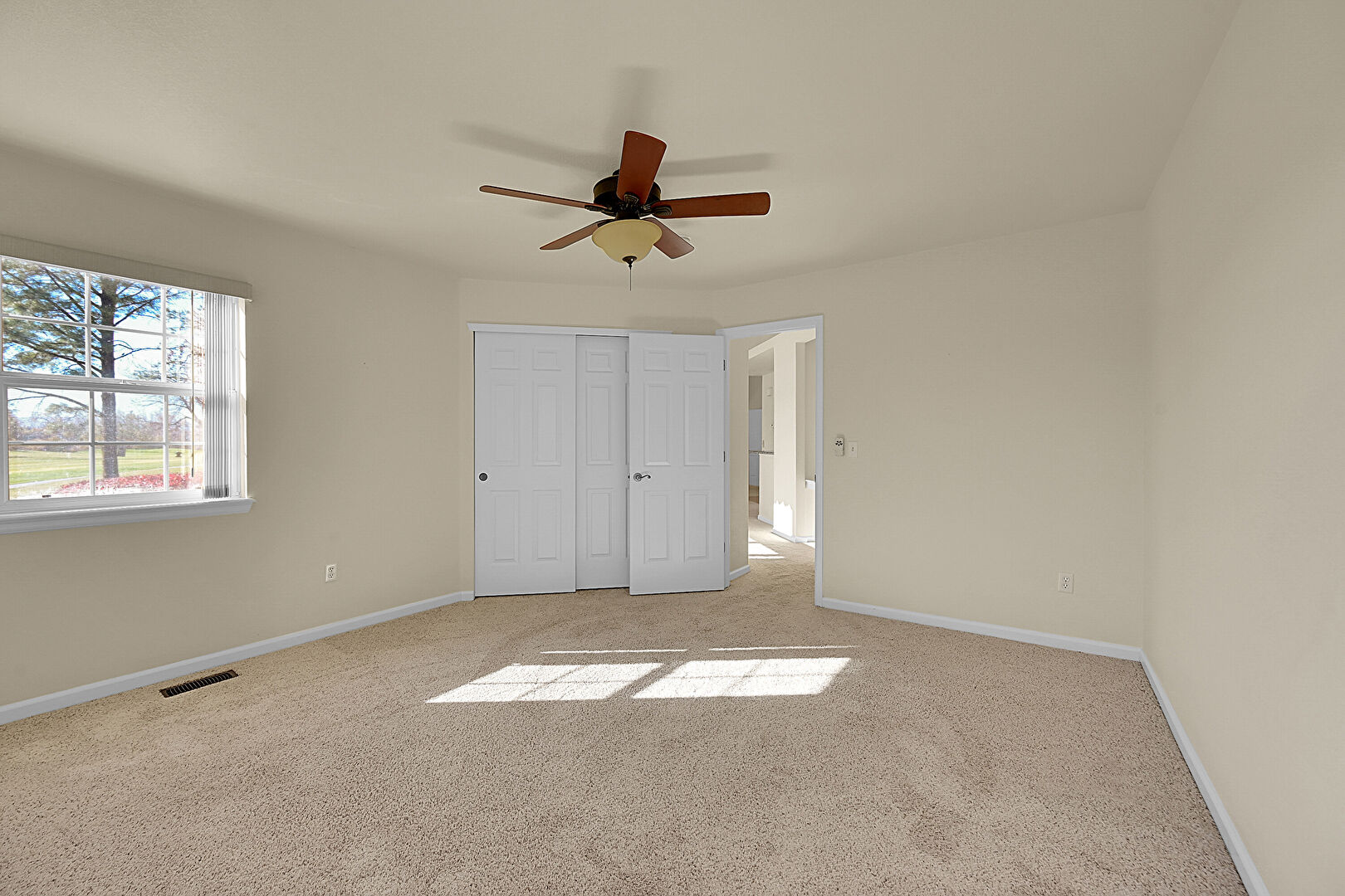 Baseboards Wall, Carpet, Ceiling Fan, Closet, Drywall, Natural Light, Vent, Carpet, Natural Light