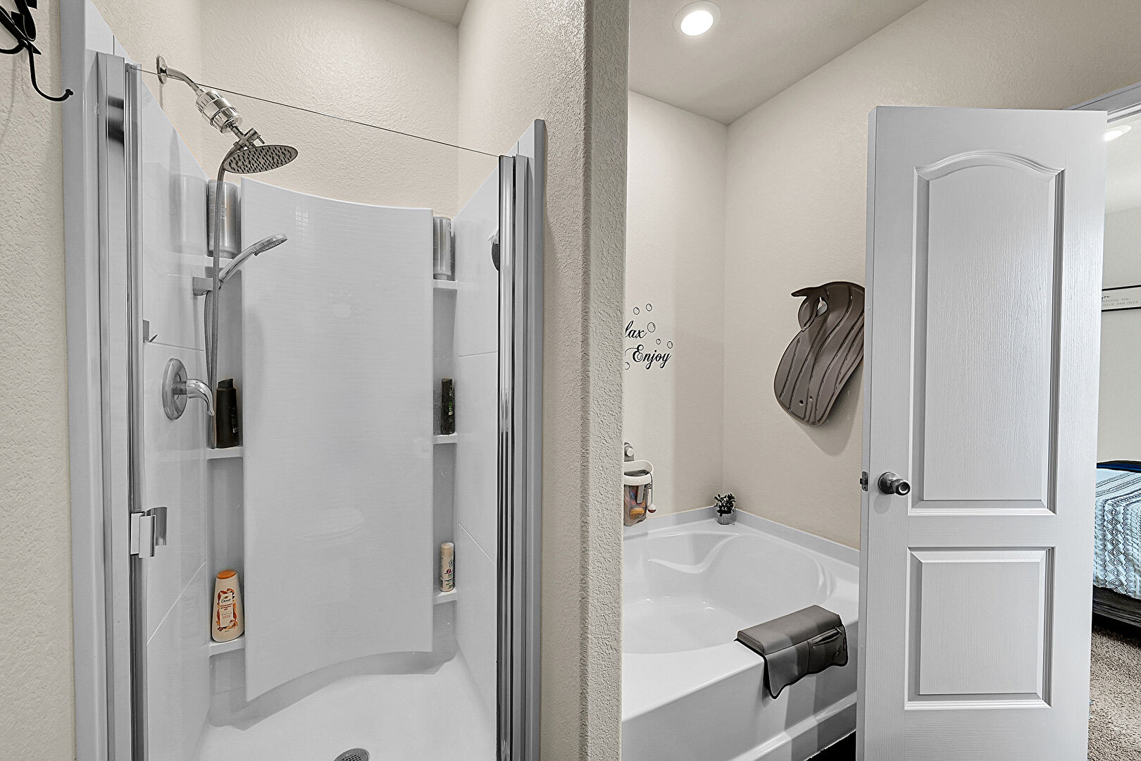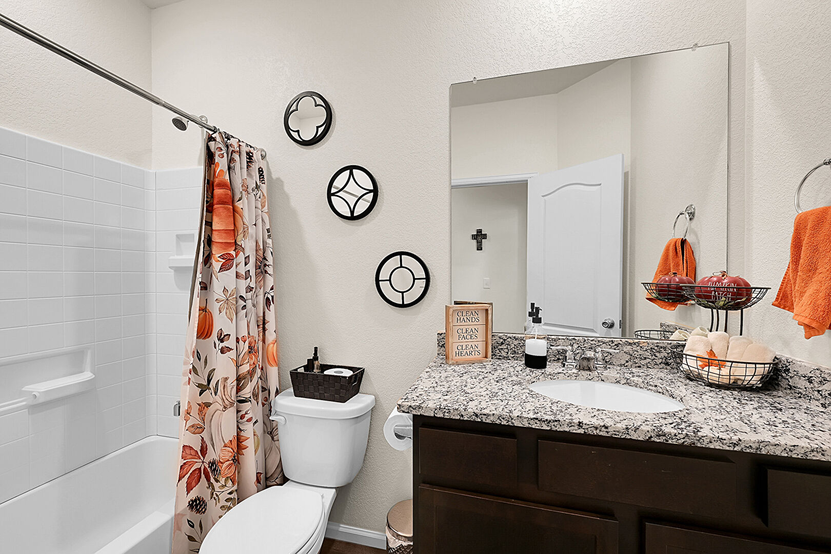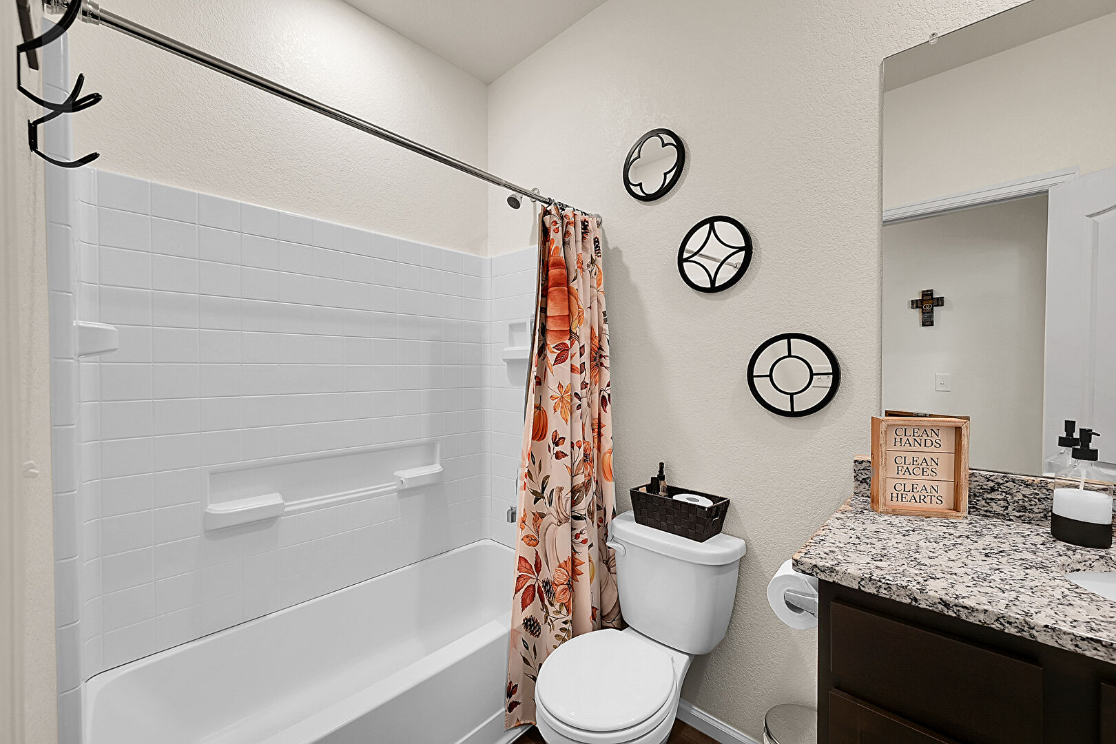 Baseboards Wall, Combined Bath Shower, Full Bathroom, Textured Wall, Vanity, Full Bathroom, Vanity