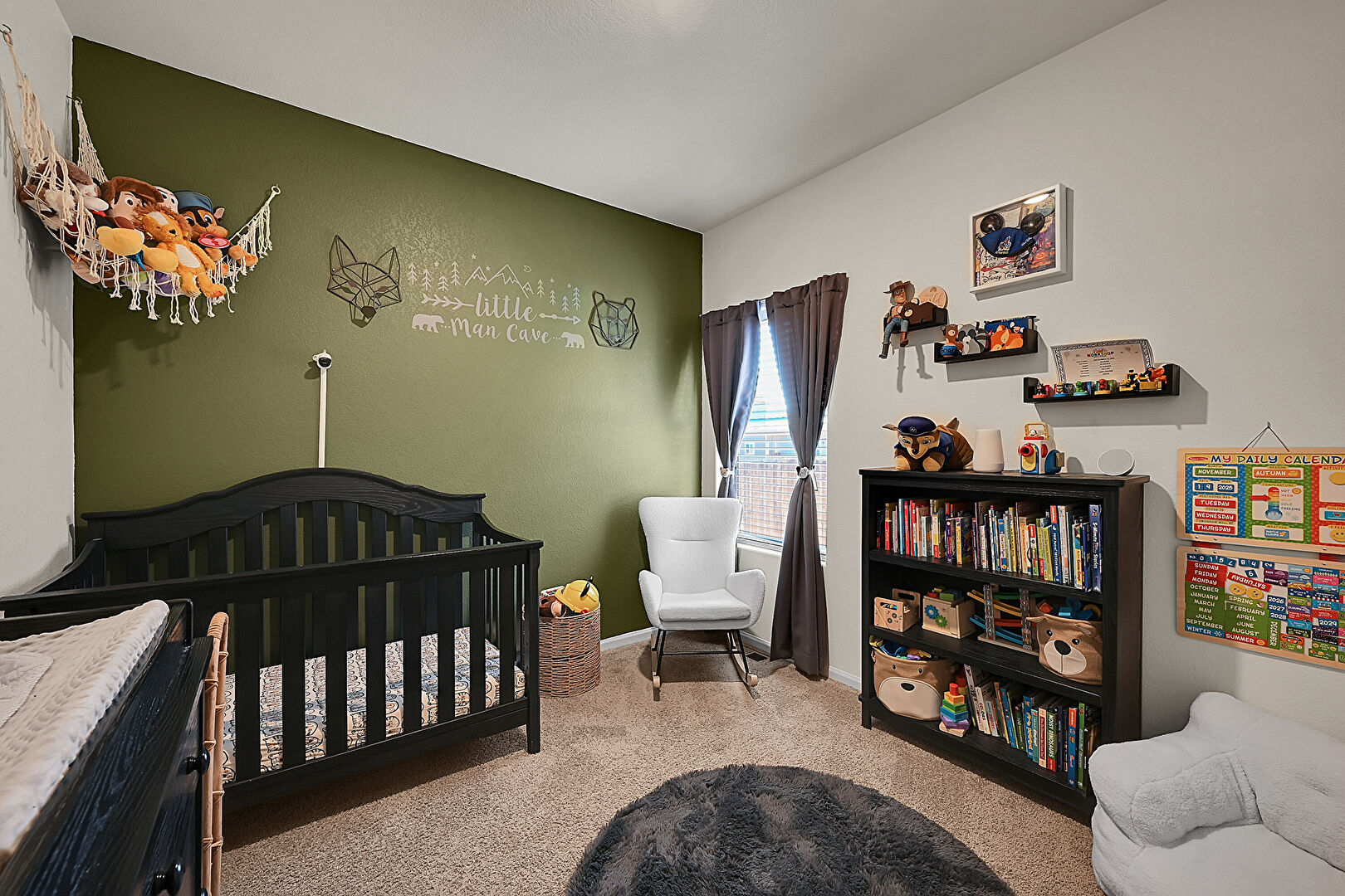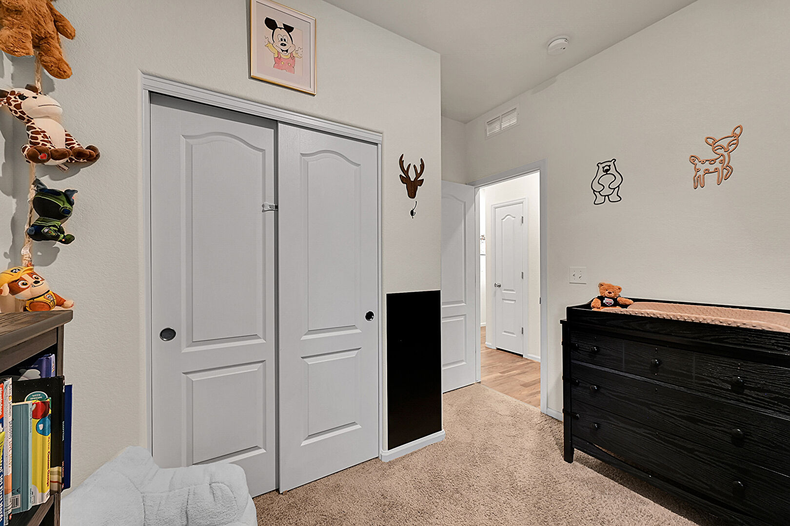 Baseboards Wall, Carpet, Drywall, Natural Light, Nursery, Office Area, Smoke Carbon Monoxide Detector, Vent, Baseboards Wall, Carpet, Closet, Natural Light
