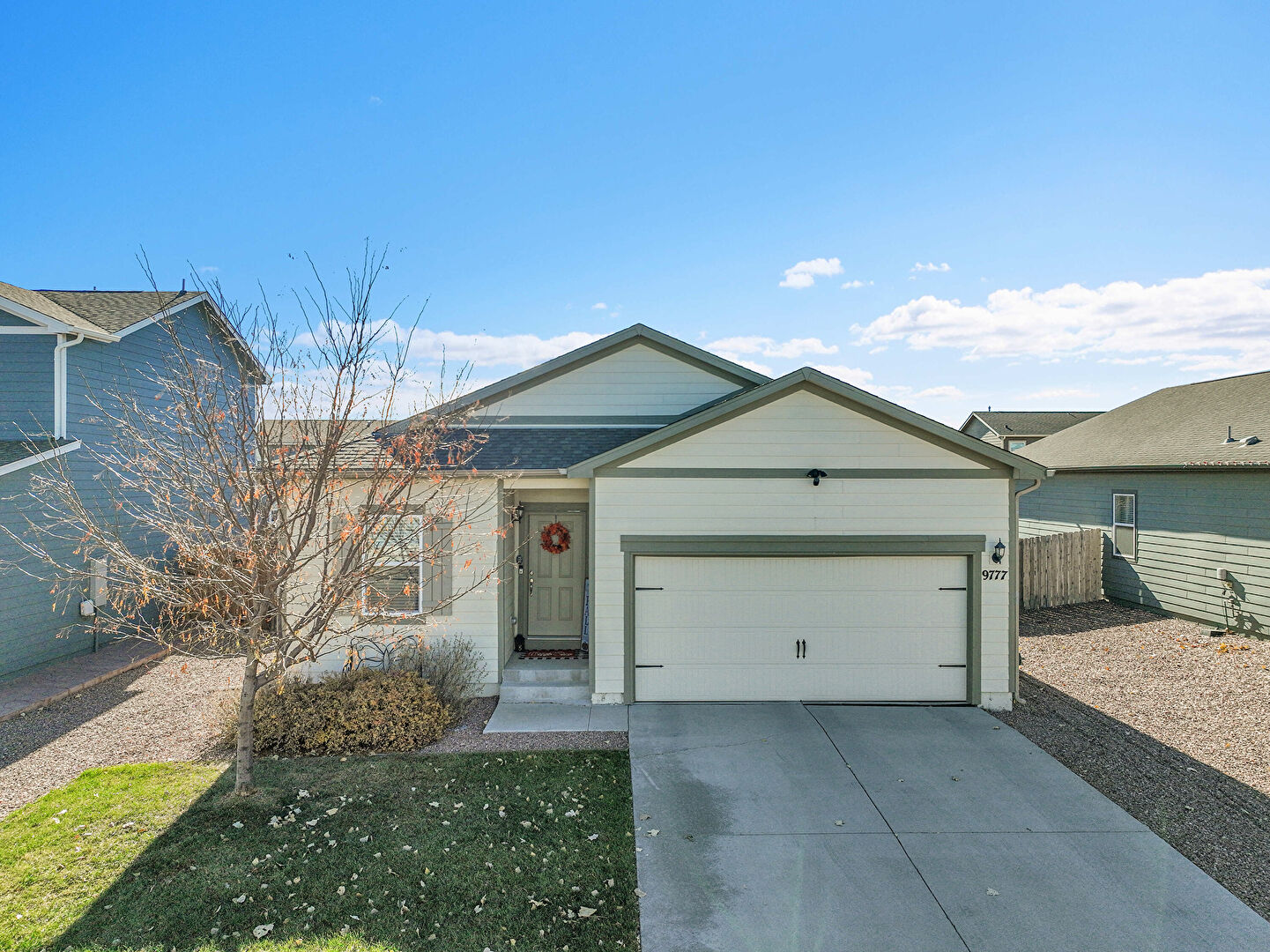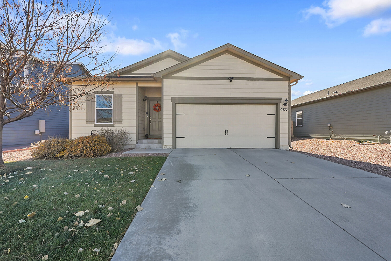 Concrete Foundation, Downspout, Driveway, Gutters, Horizontal Siding, Stoop