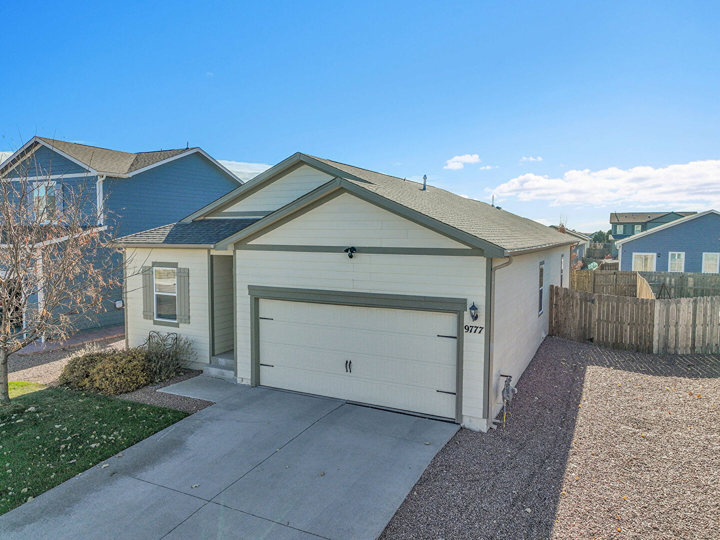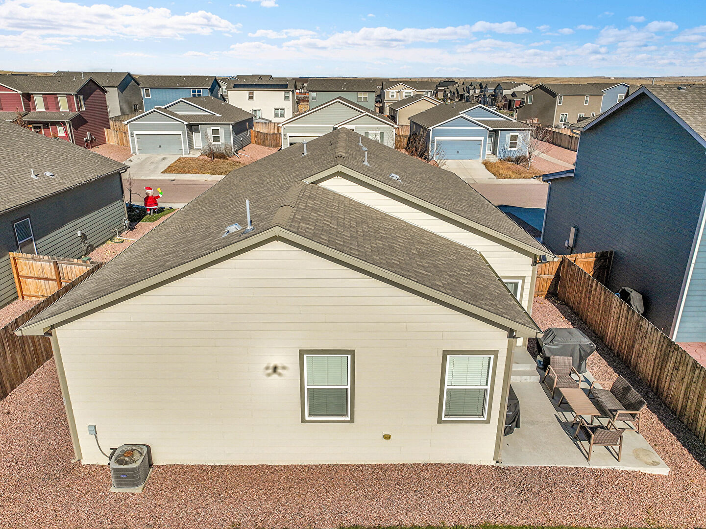 Concrete Foundation, Downspout, Driveway, Fence, Gas Meter, Gutters, Horizontal Siding, Lawn, Patio, Residential View, Shingle Roof, Stoop, Central Ac, Concrete Foundation, Driveway, Mountain View, Residential View, Shingle Roof, Stucco Siding