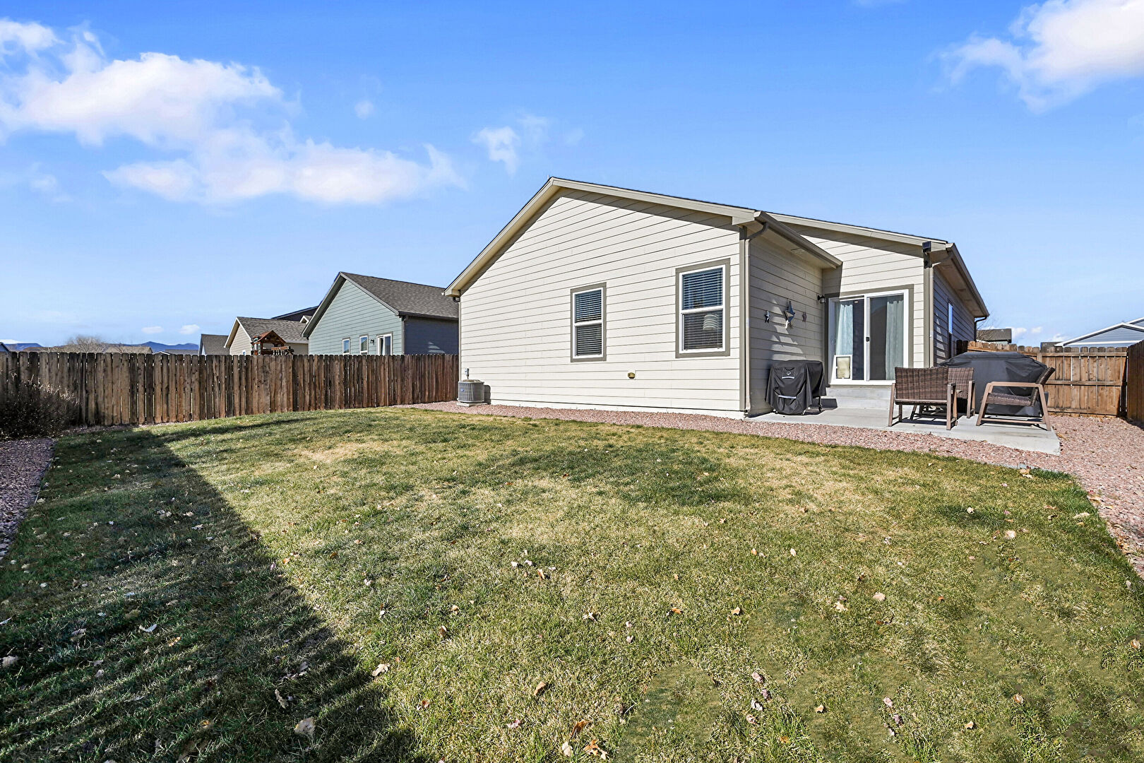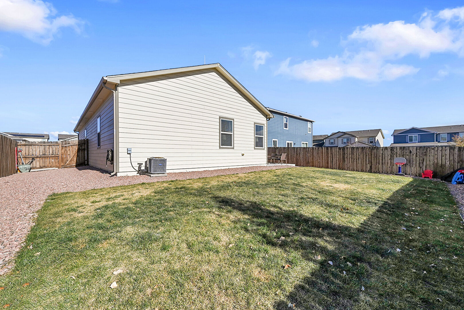 Central Ac, Concrete Foundation, Downspout, Fence, Grill, Gutters, Horizontal Siding, Lawn, Patio, Residential View, Central Ac, Horizontal Siding, Lawn
