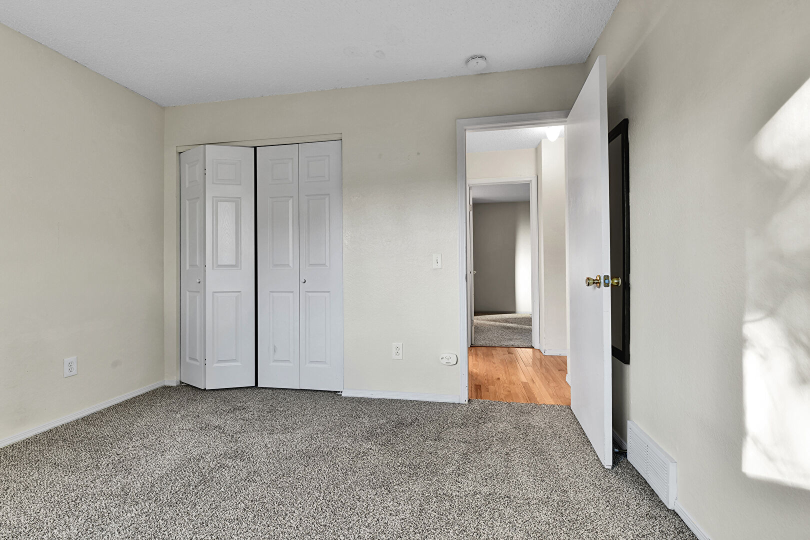 Baseboards Wall, Carpet, Closet, Drywall, Natural Light, Smoke Carbon Monoxide Detector, Textured Ceiling, Vent, Baseboards Wall, Vent