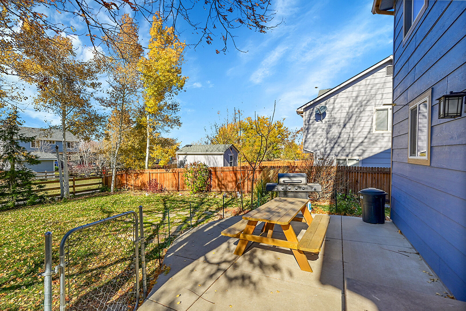 Fence, Lawn, Outdoor Dining Area, Patio, Grill